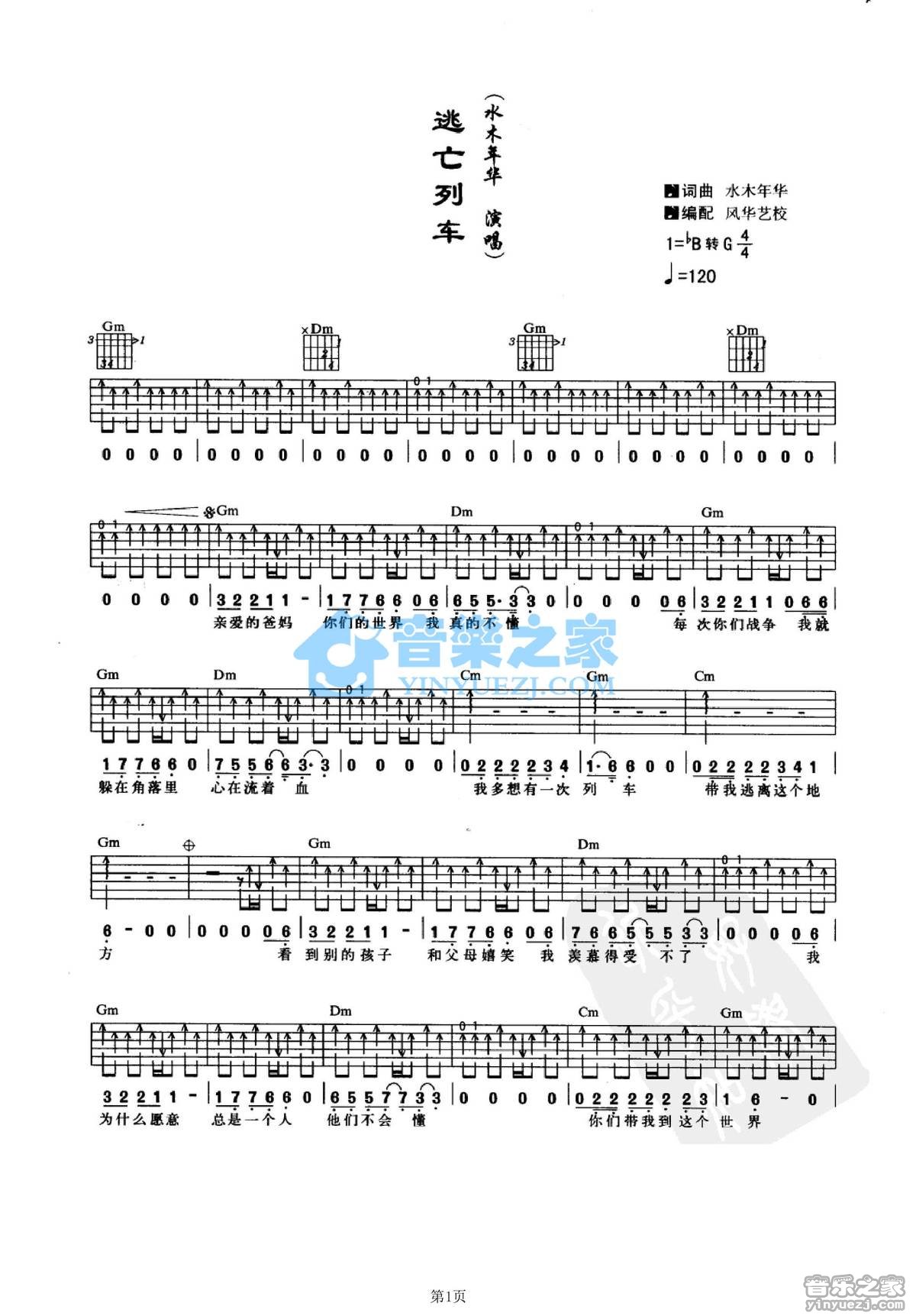 吉他水木年华《逃亡列车》吉他谱
