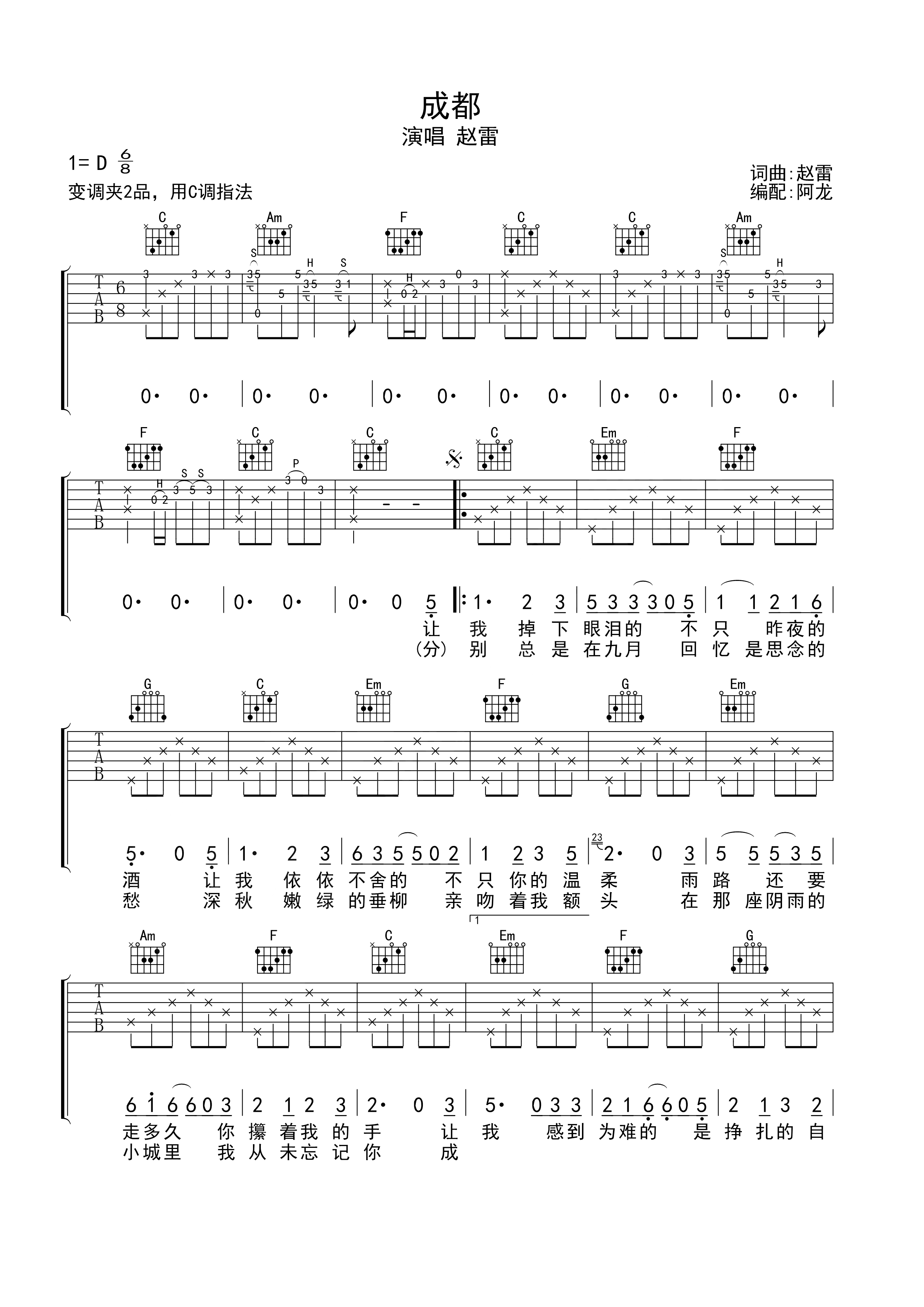 吉他赵雷《成都》吉他谱 - 无限延音编配