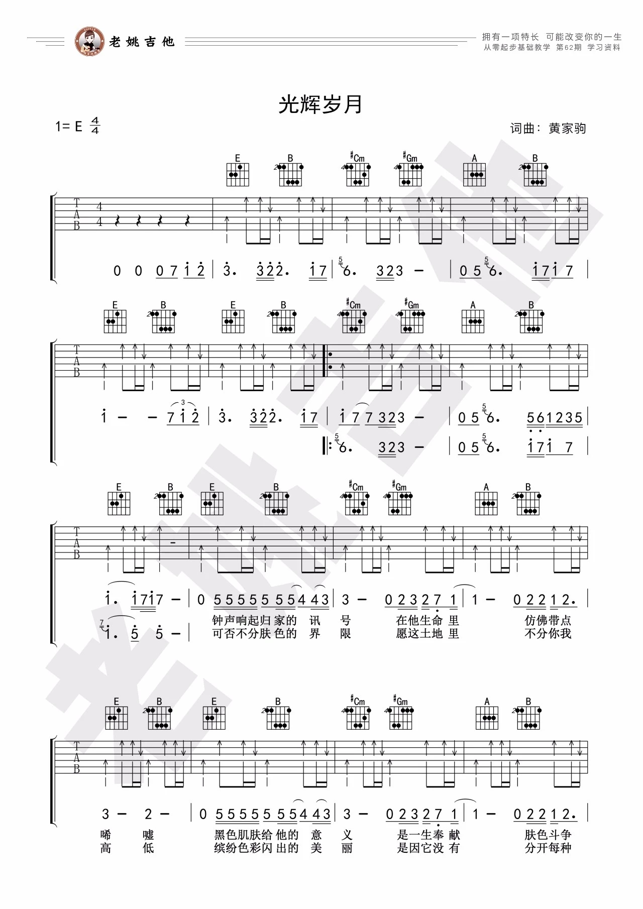 BEYOND《光辉岁月》吉他谱,老姚吉他编配出品,共有3张高清图谱。...