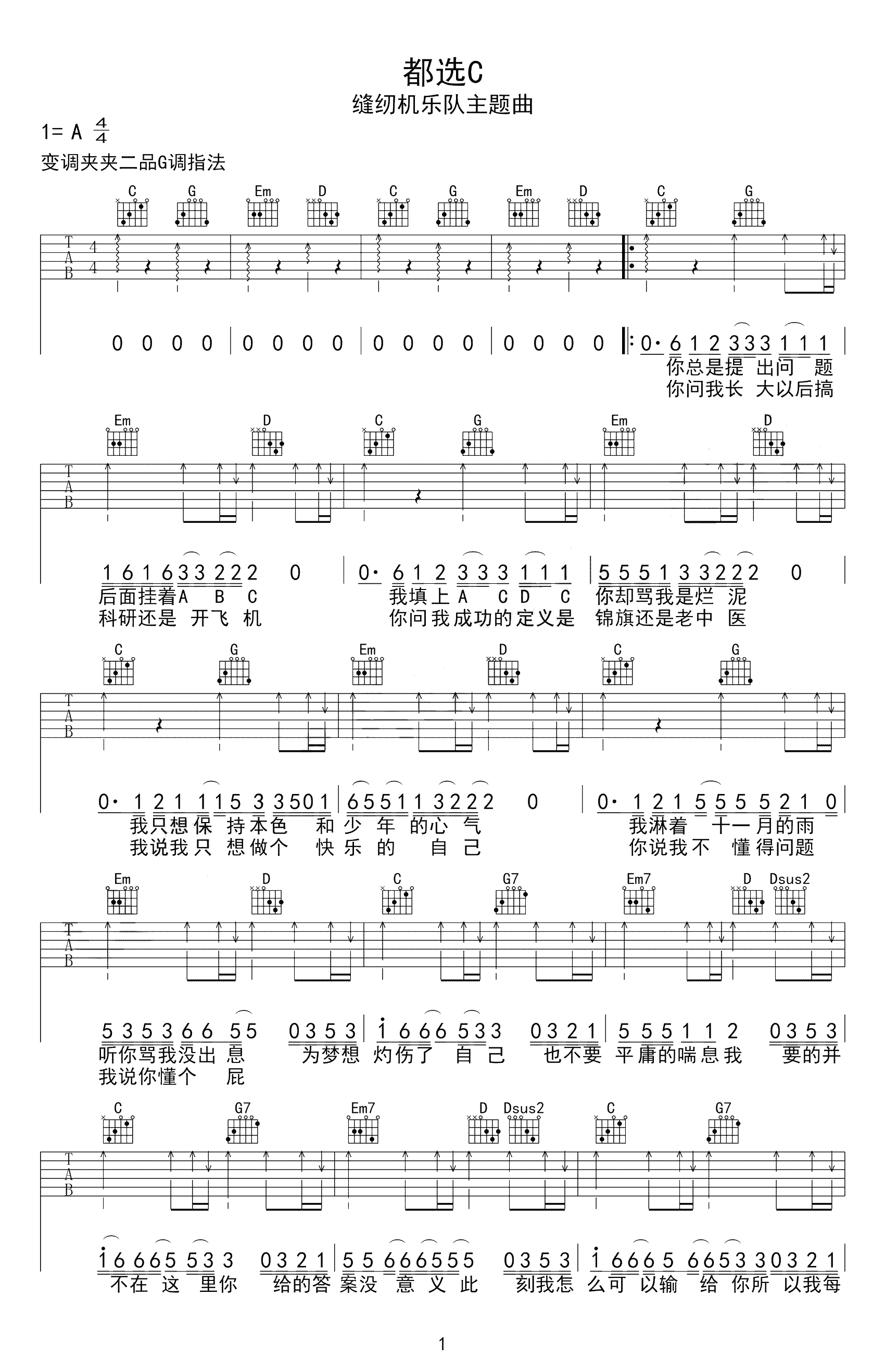 吉他缝纫机乐队《都选C》吉他谱 - 完整版