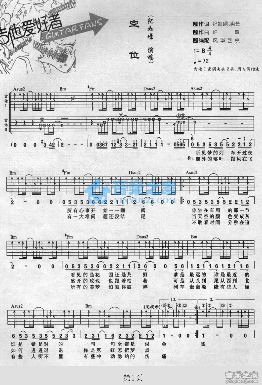 吉他纪如璟《空位》吉他谱 - 非常多人都在弹的版本