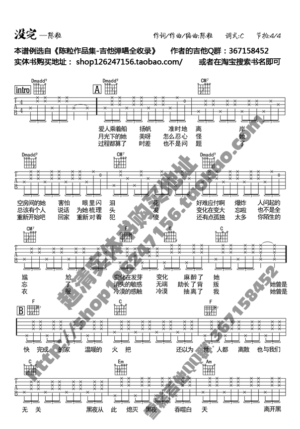 陈粒《没完》吉他谱,十万吉他手编配出品,共有2张高清图谱,免翻页排版设计。...