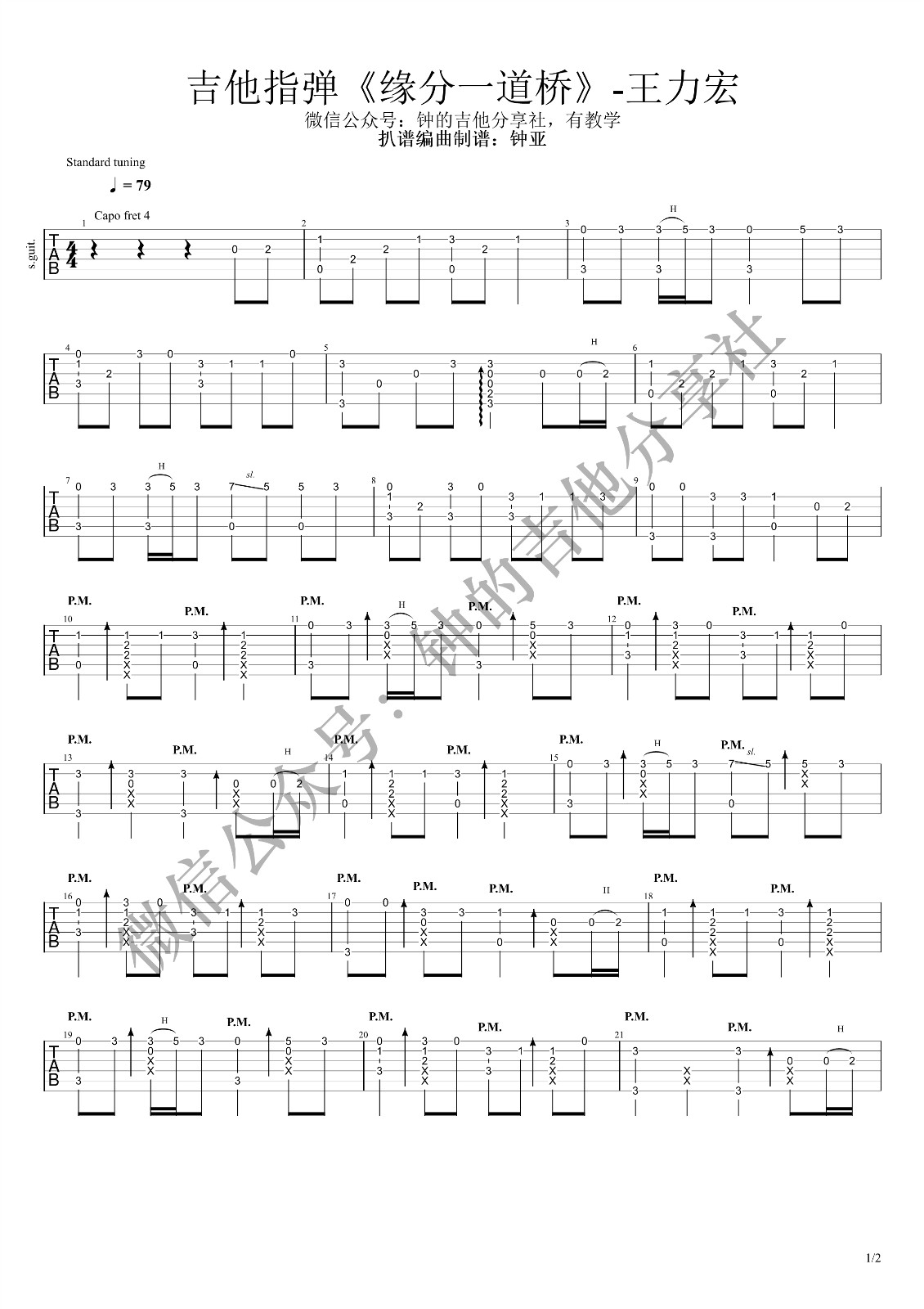 吉他王力宏《缘分一道桥》吉他谱 - 小编推荐练习