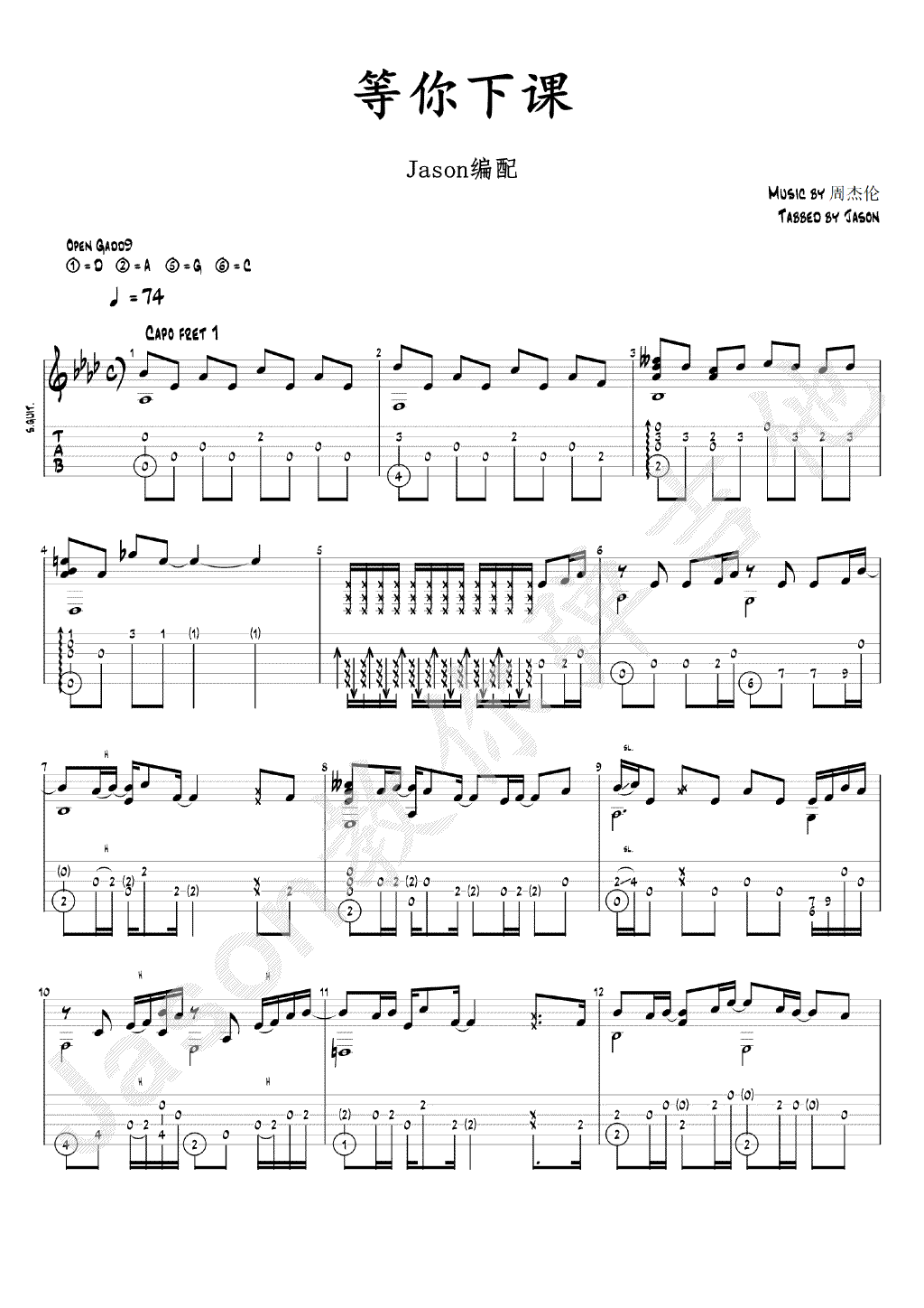 吉他周杰伦《等你下课》吉他谱 - 非常多人都在弹的版本