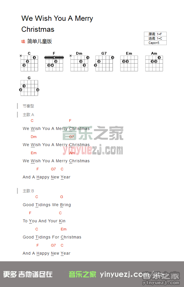 《wewishyouamerrychristmas》吉他谱,共有1张高清图谱,免翻页排版设计。...