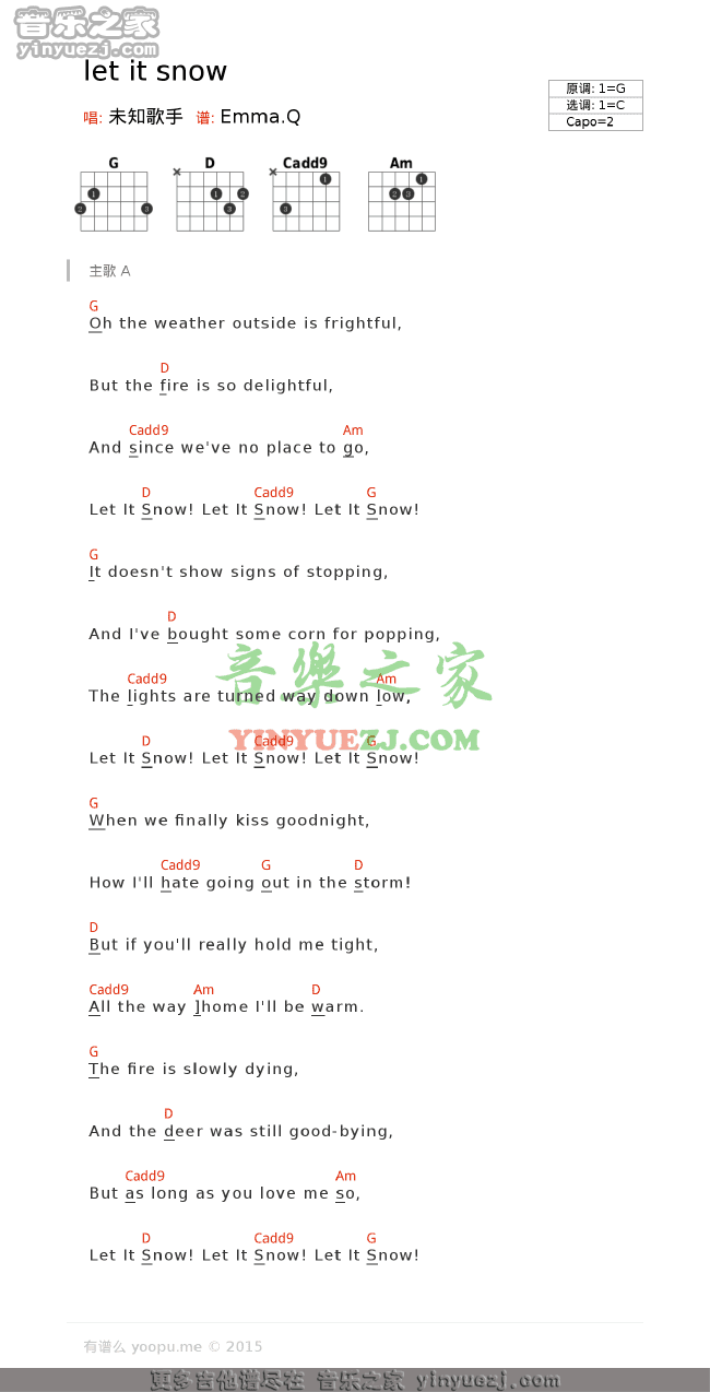 RosieThomas《LetItSnow》吉他谱,YYZJ编配出品,共有1张高清图谱,免翻页排版设计。...