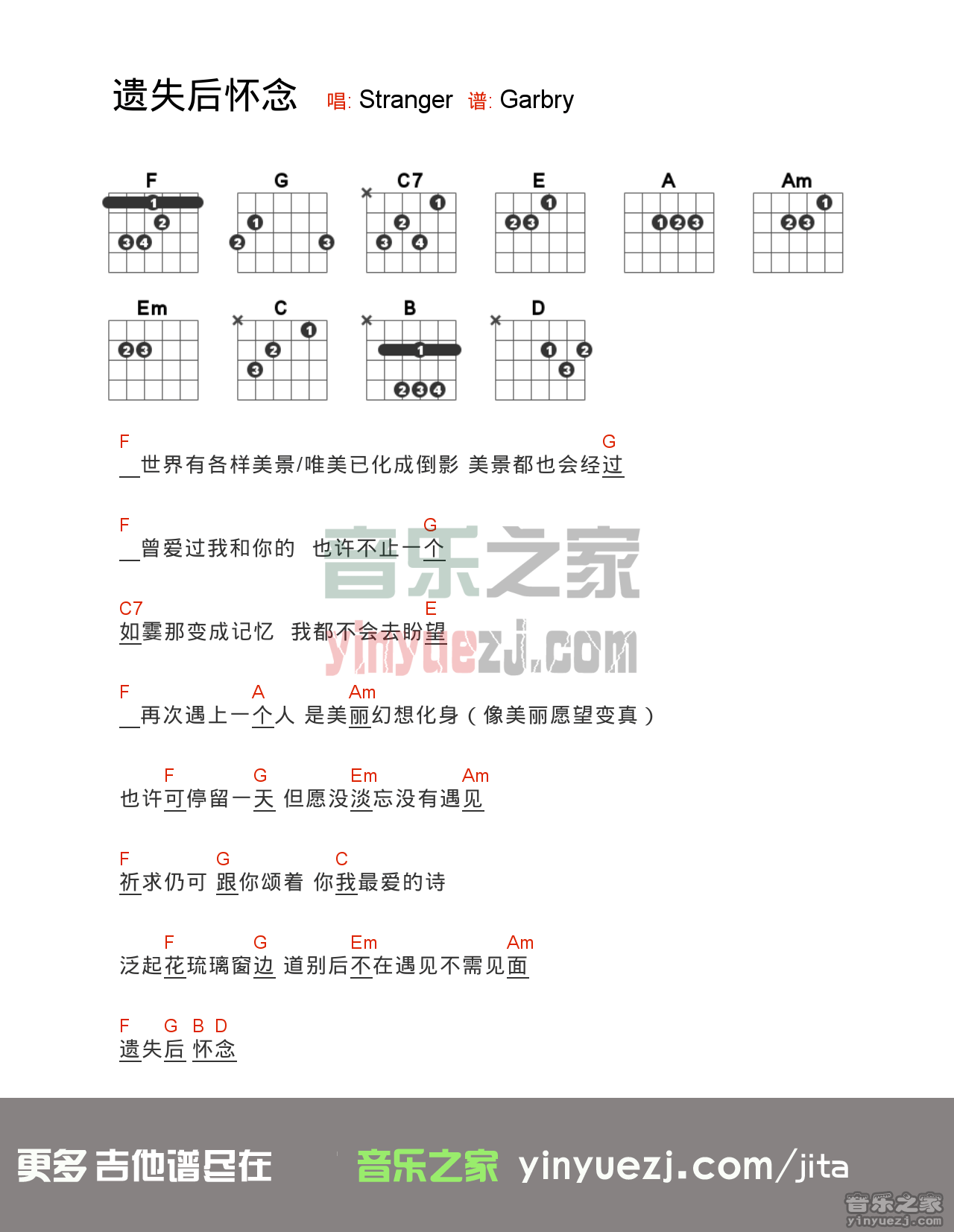 stranger《遗失后怀念》吉他谱,共有1张高清图谱,免翻页排版设计。...