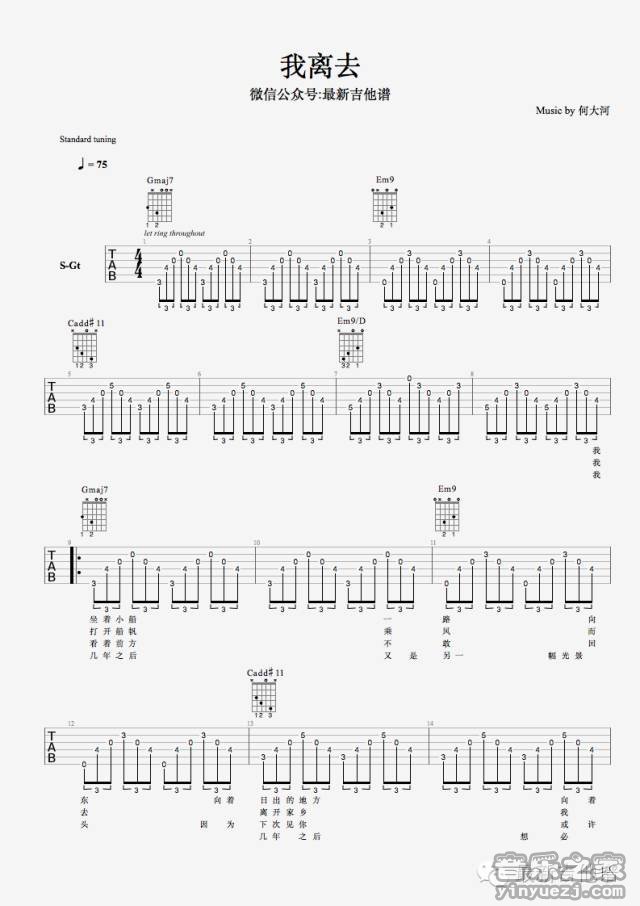 吉他何大河《我离去》吉他谱 - 完整版