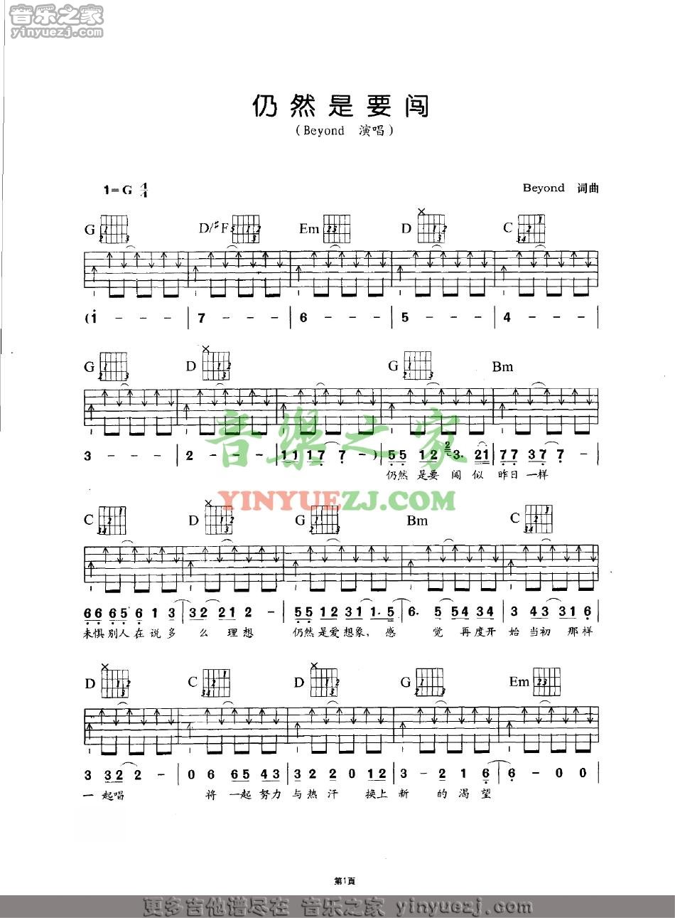 Beyond《仍然是要闯》吉他谱,YYZJ编配出品,共有3张高清图谱。...