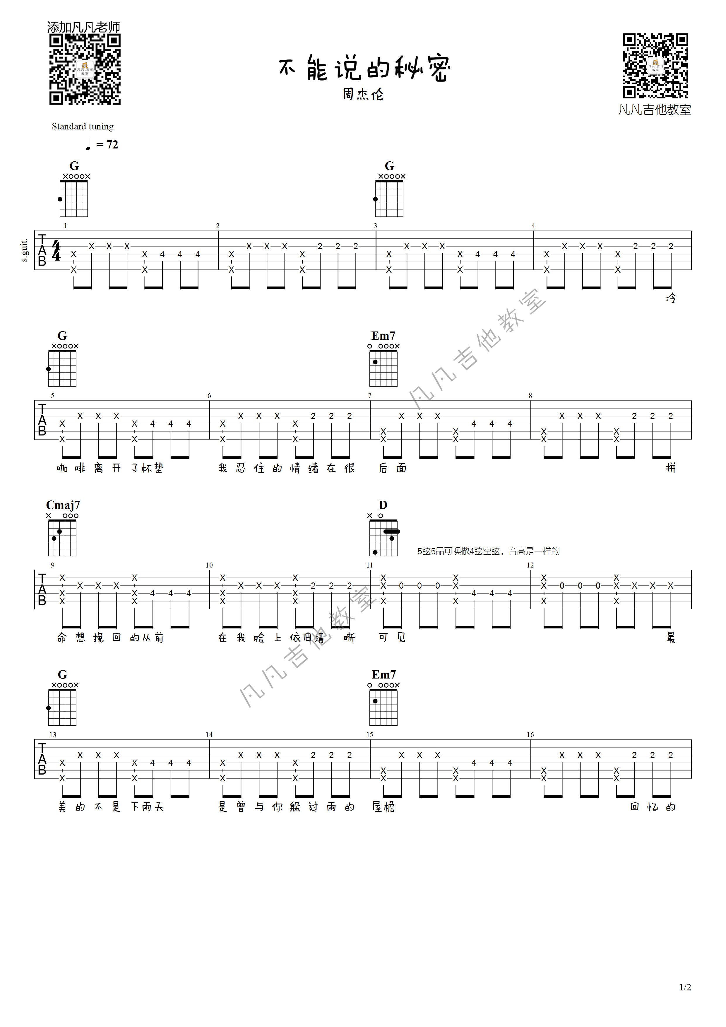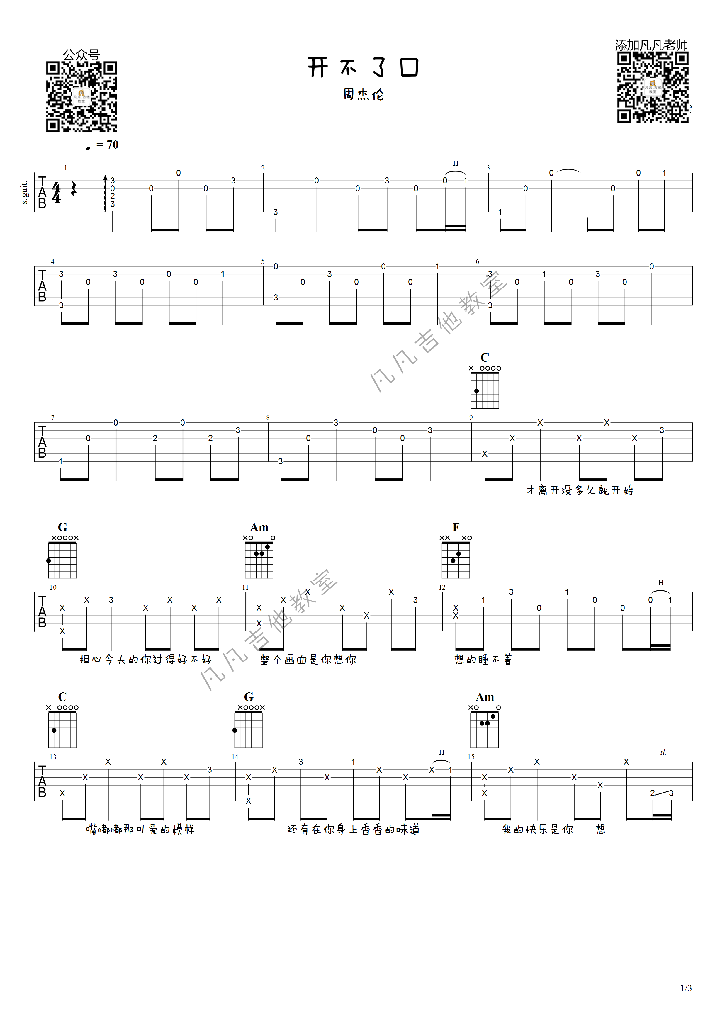 周杰伦《开不了口》吉他谱,共有3张高清图谱。...