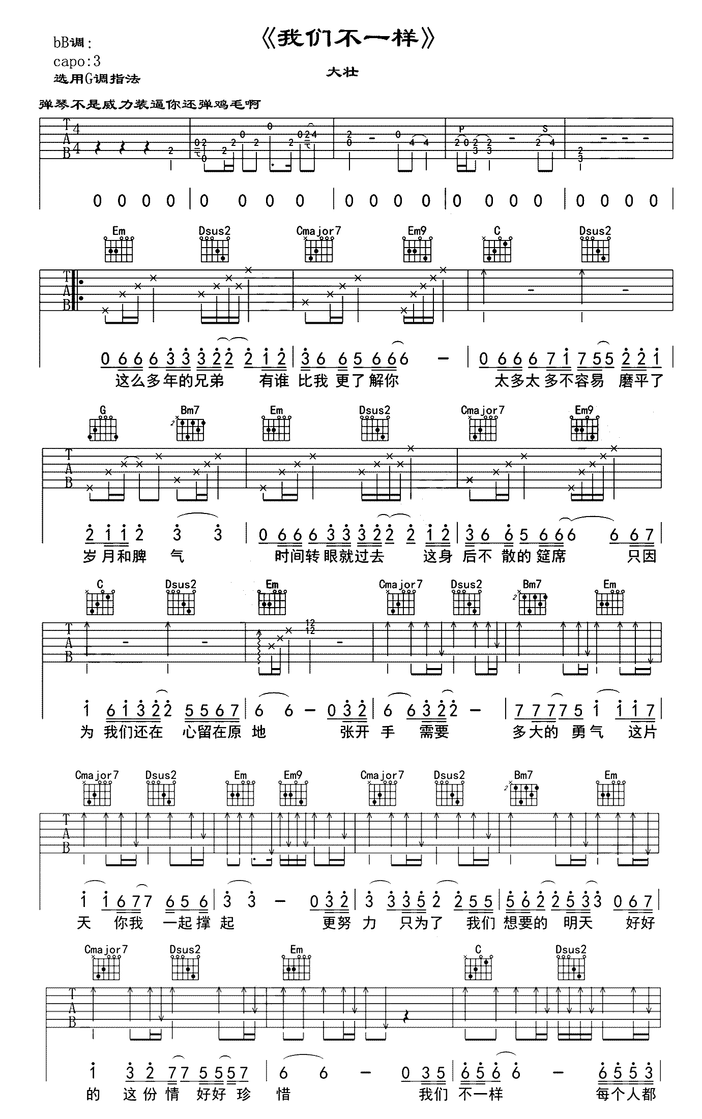 吉他大壮 《我们不一样》吉他谱 - 好听到爆炸