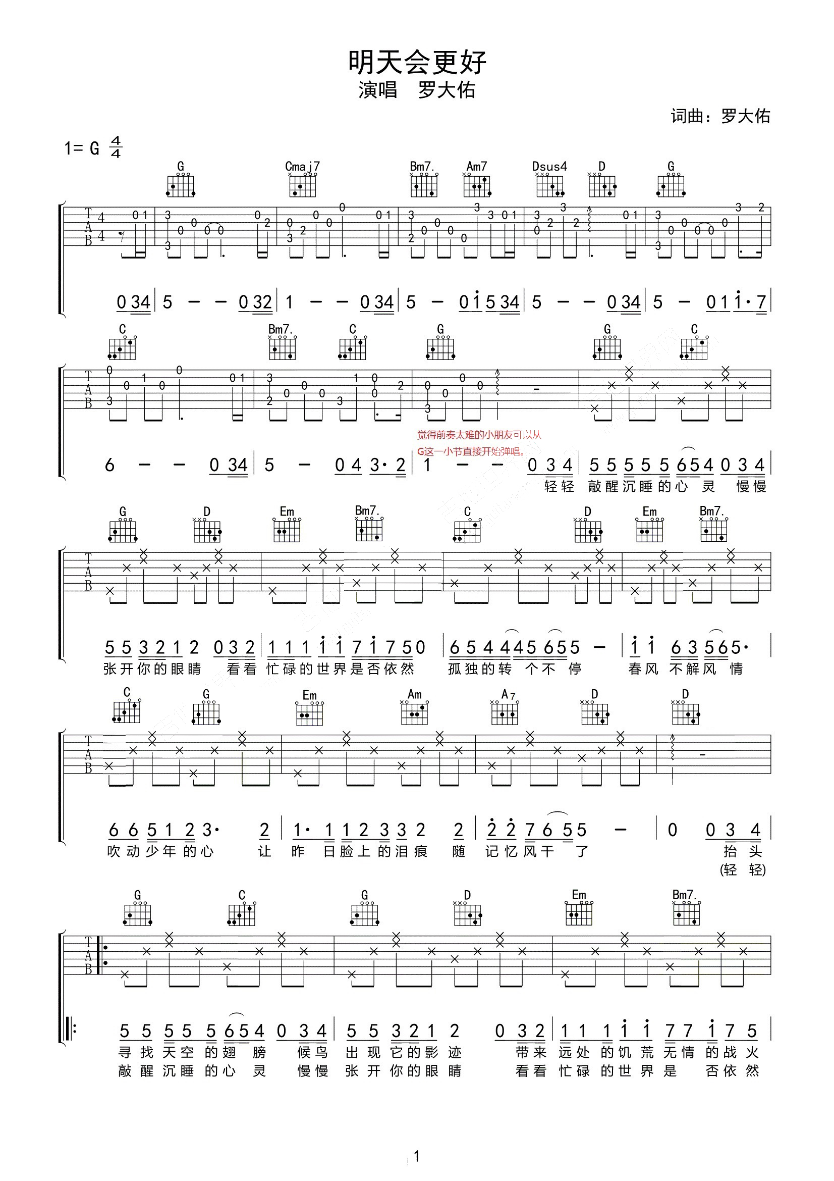 罗大佑《明天会更好》吉他谱,共有3张高清图谱。...