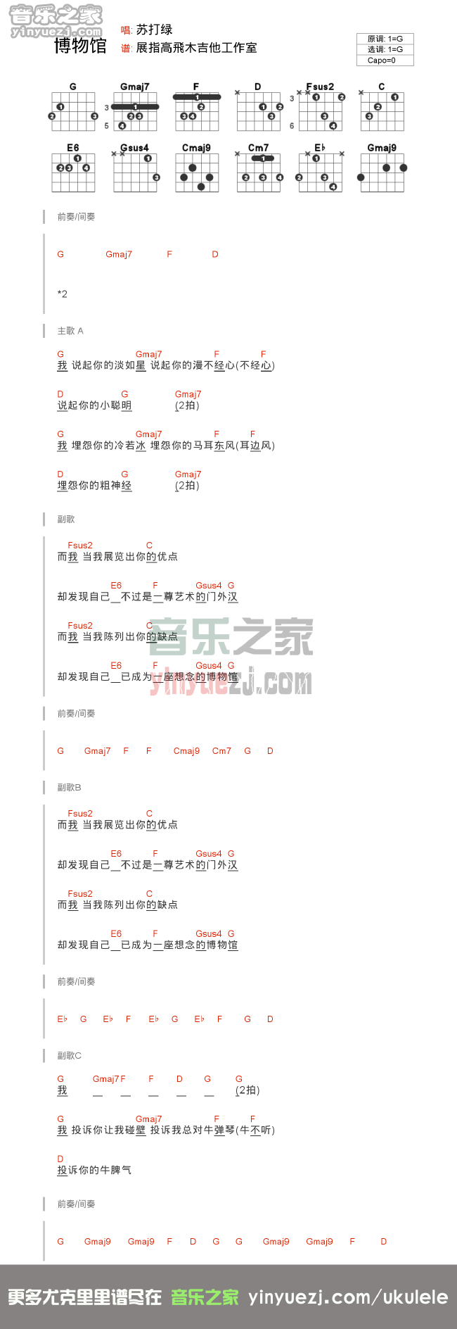 苏打绿《博物馆》吉他谱,YYZJ编配出品,共有1张高清图谱,免翻页排版设计。...