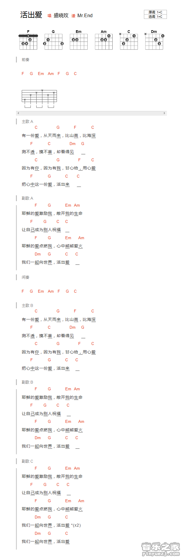 吉他盛晓玫《活出爱》吉他谱 - 推荐版本