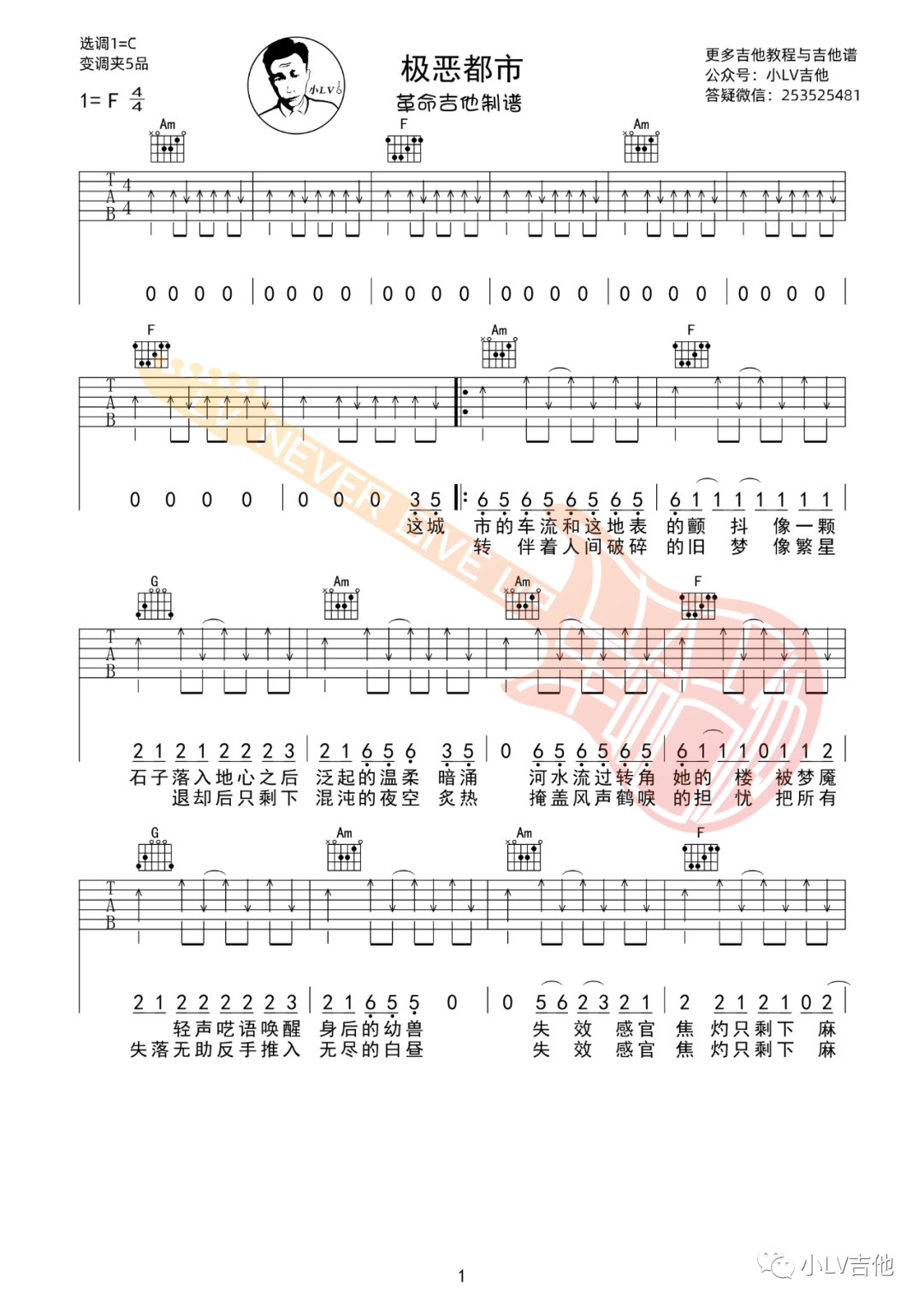 夏日入侵企画《极恶都市》吉他谱,革命吉他编配出品,共有3张高清图谱。...