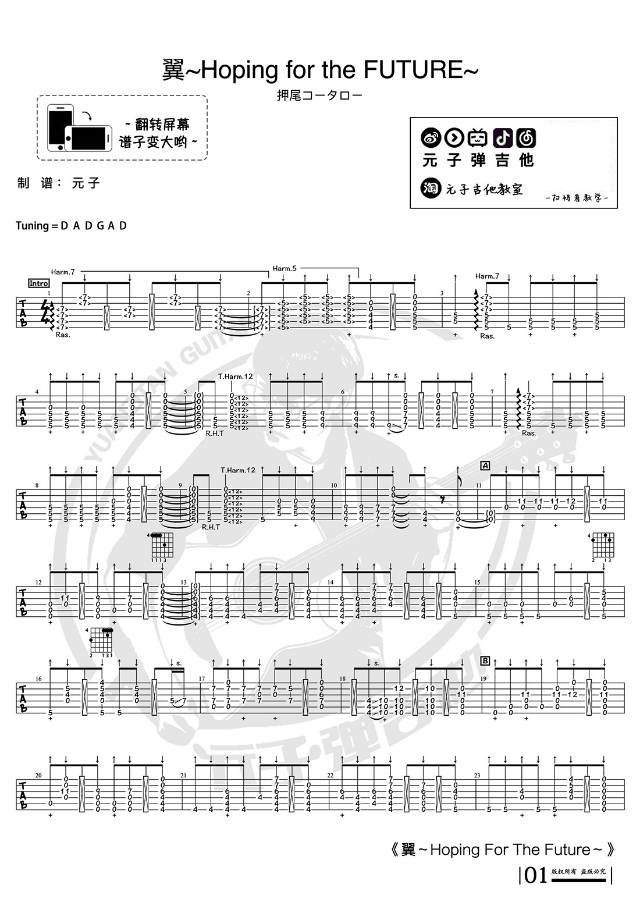 吉他押尾《wings hoping for future》吉他谱 - 小编推荐练习