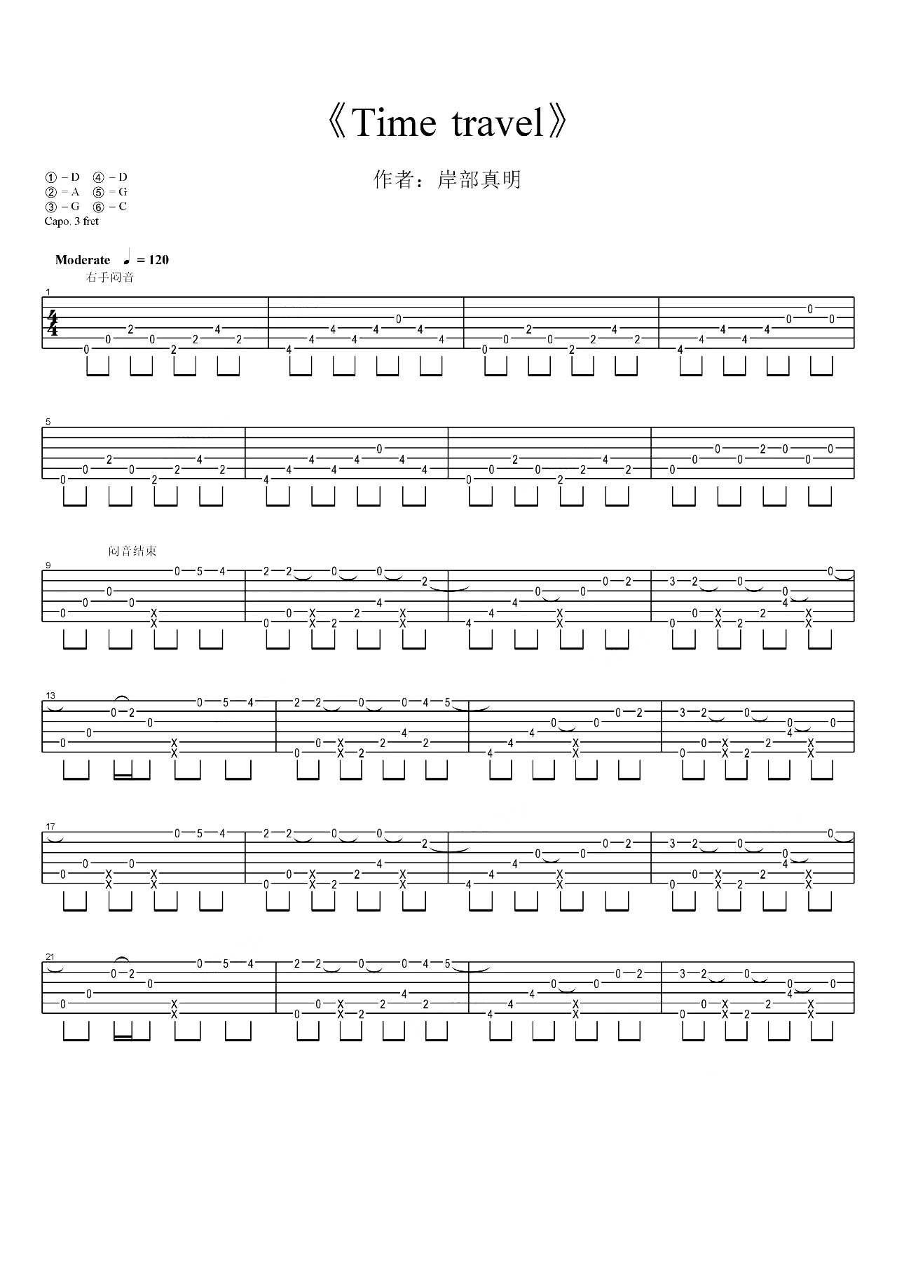 吉他岸部真明《time travel》吉他谱 - 很多人都在弹的版本