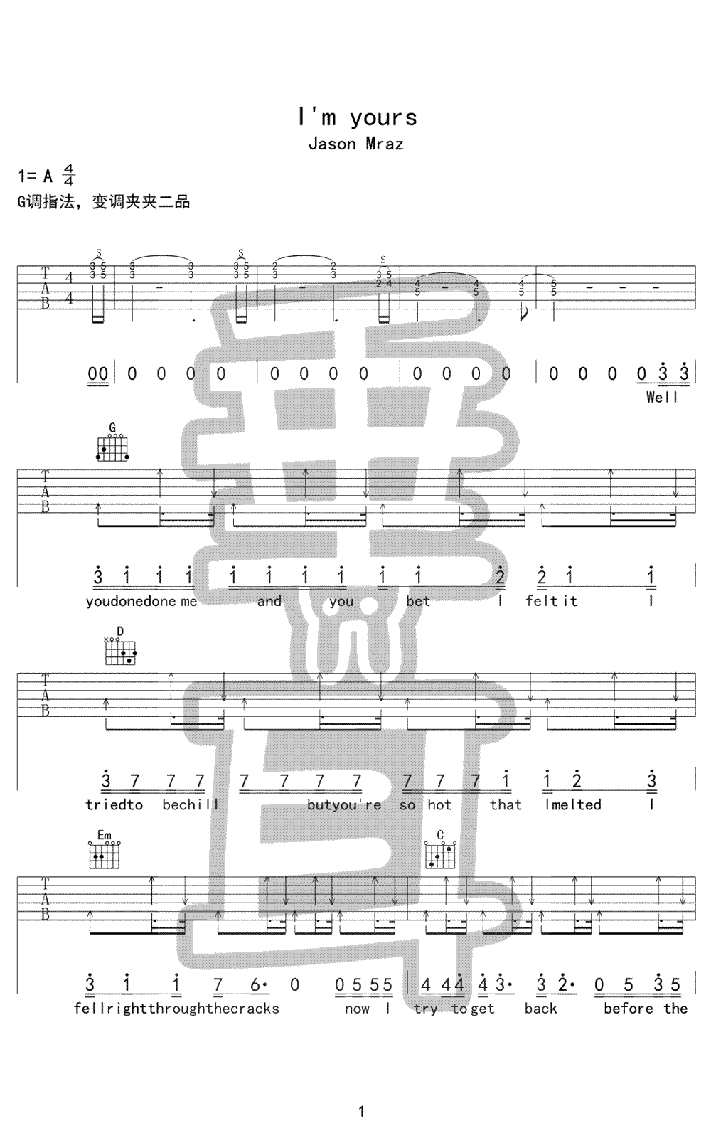吉他Jason Mraz《Im yours》吉他谱 - 免费版