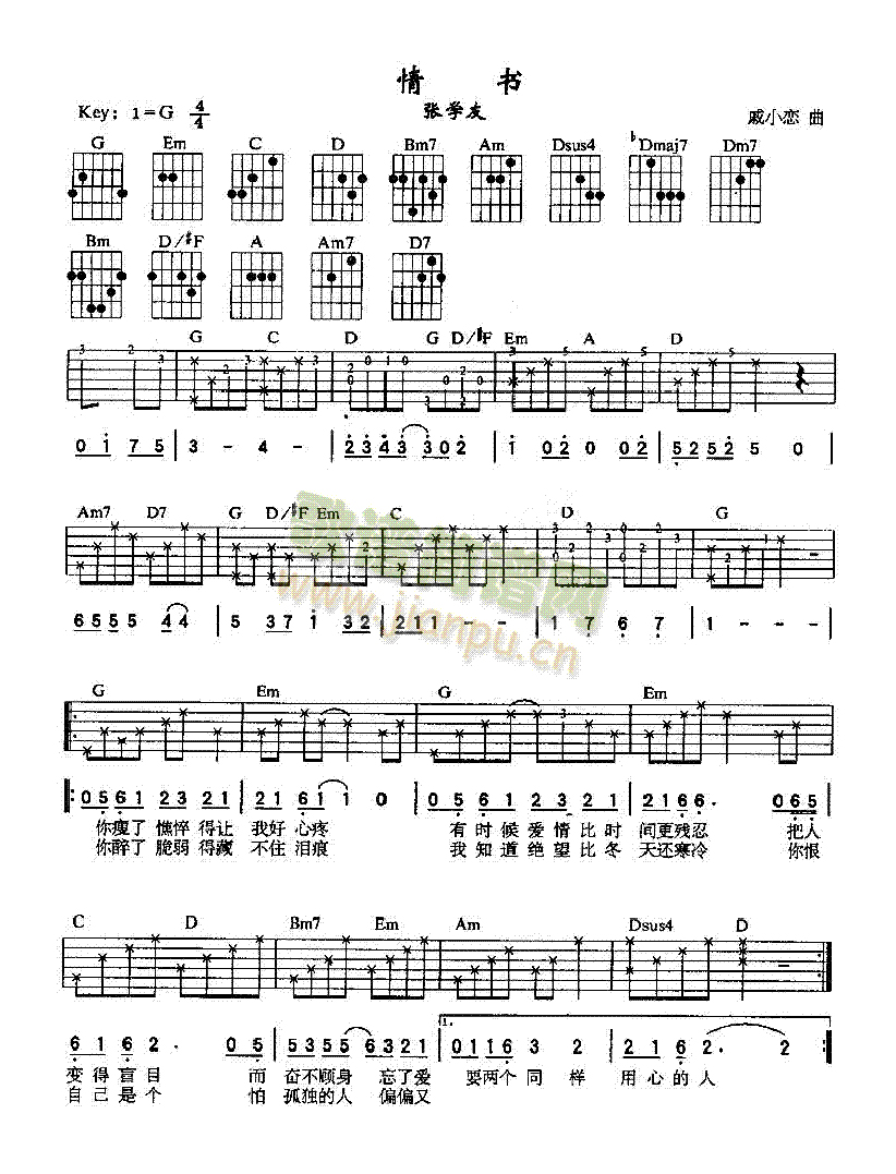 吉他张学友《情书》吉他谱 - 很多人都在弹的版本