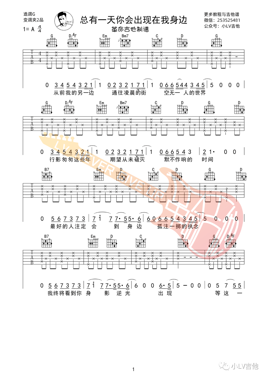 棱镜《总有一天你会出现在我身边》吉他谱,革命吉他编配出品,共有4张高清图谱。...
