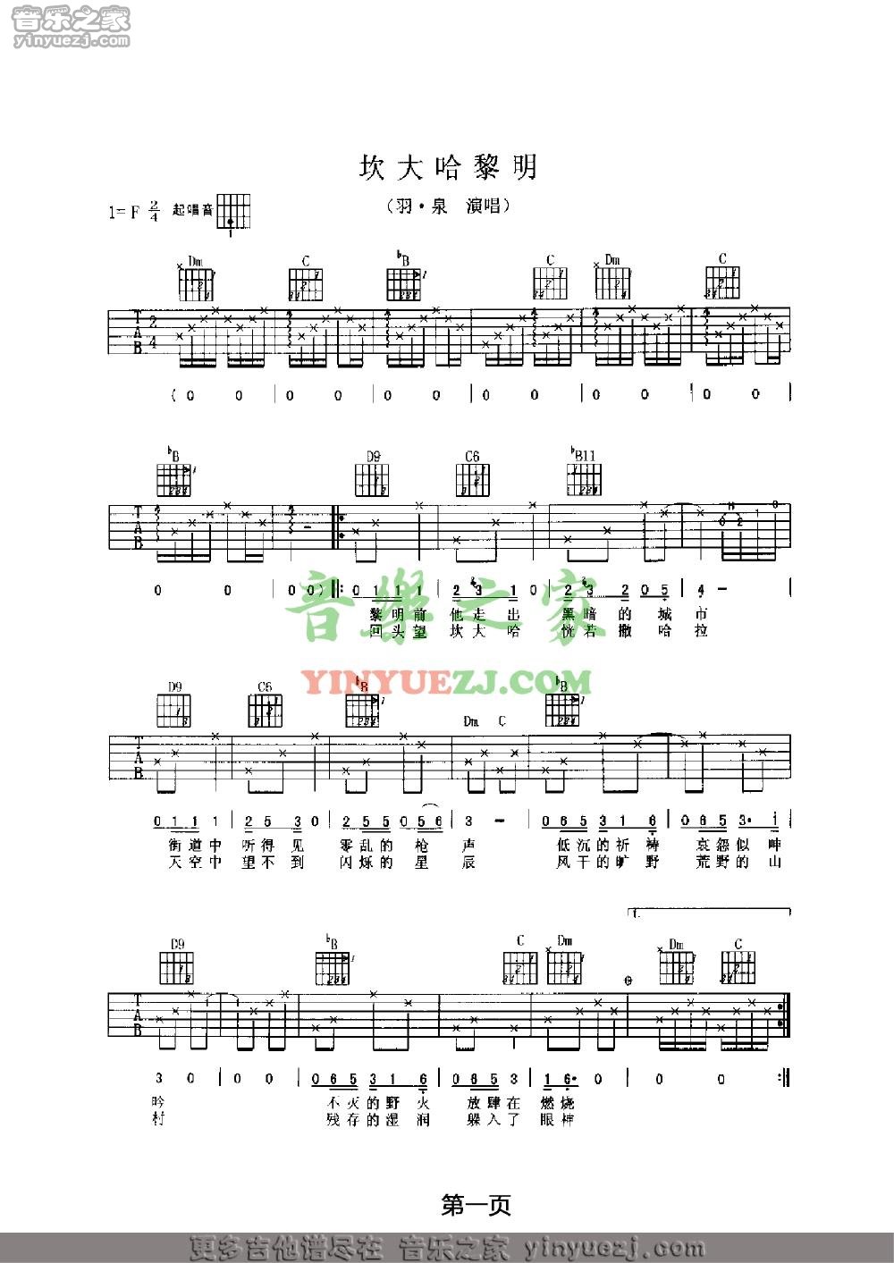羽泉《坎大哈黎明》吉他谱,YYZJ编配出品,共有3张高清图谱。...
