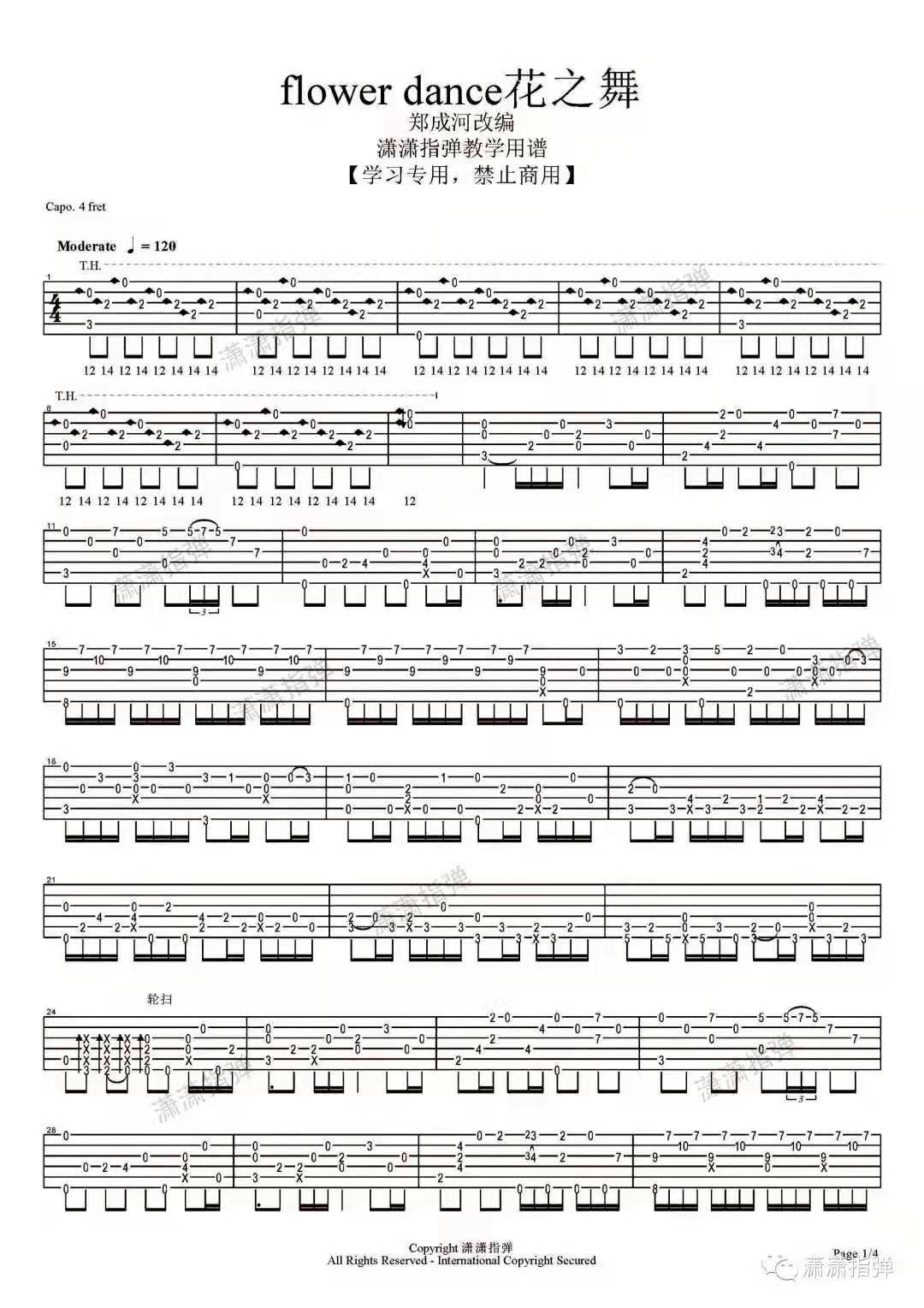 郑成河《flowerdance》吉他谱,潇潇指弹编配出品,共有4张高清图谱。...