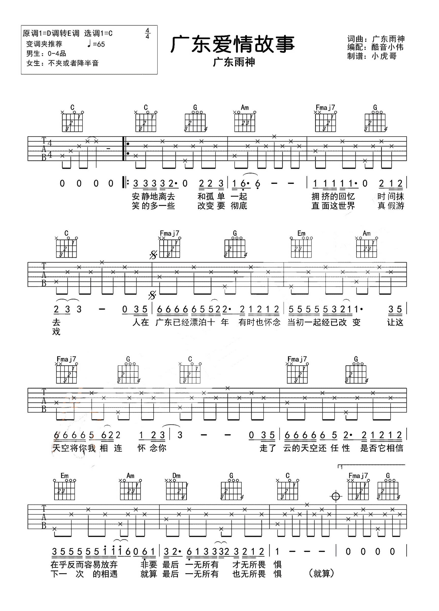 吉他《广东爱情故事》吉他谱 - 非常多人都在弹的版本
