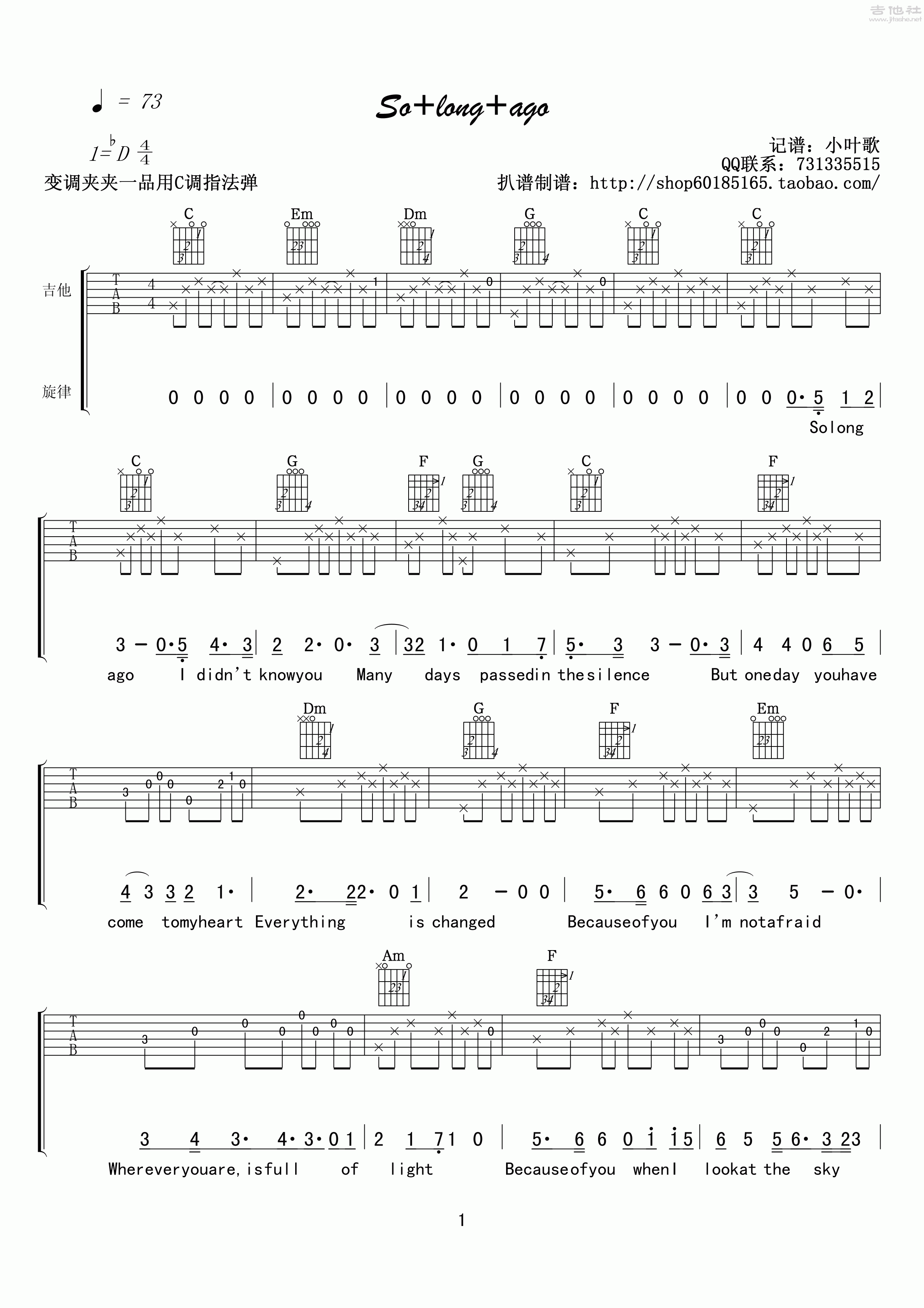 《Solongago》吉他谱,小叶歌编配出品,共有3张高清图谱。...