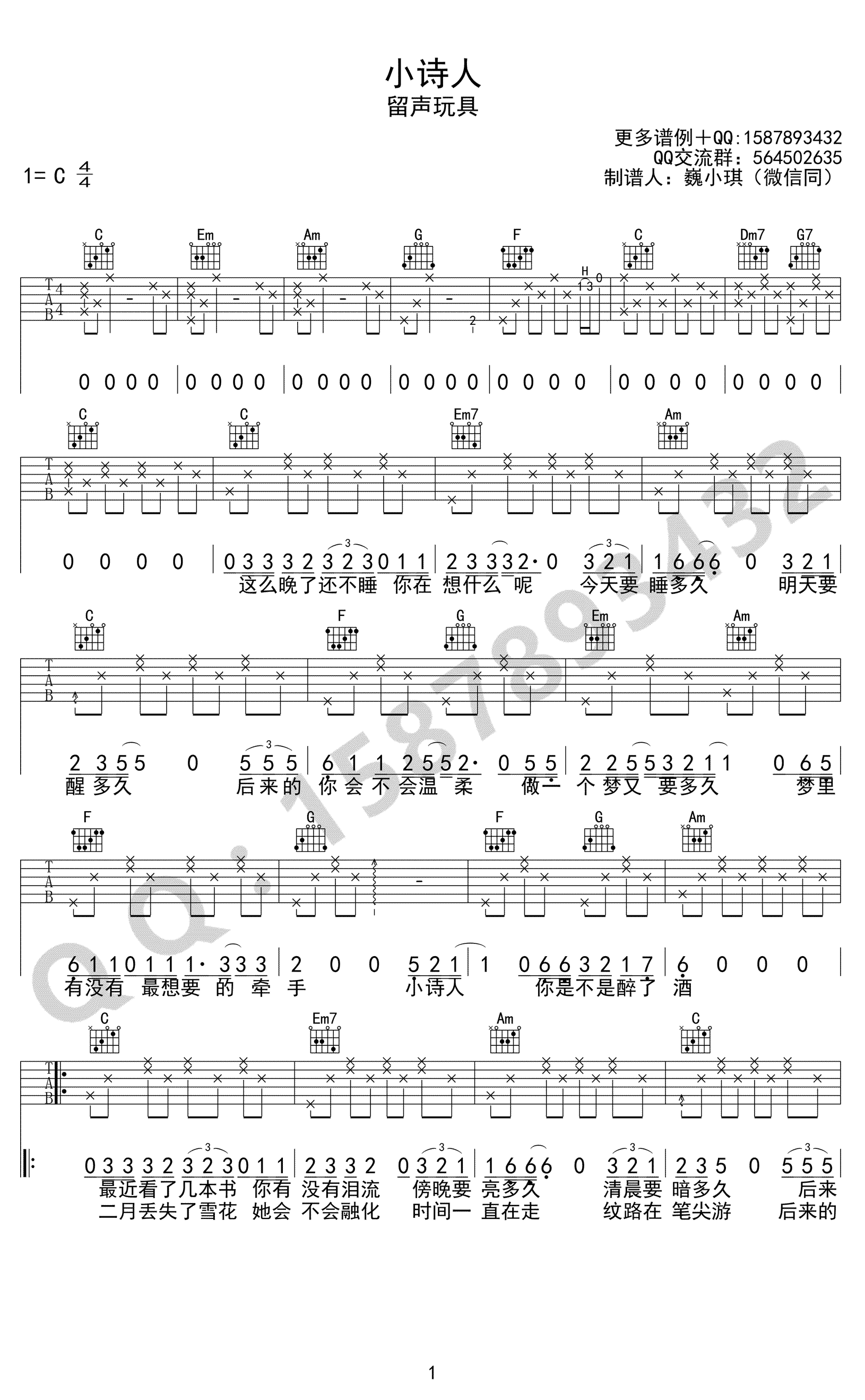 小诗人吉他谱,C调高清弹唱谱,留声玩具的一首民谣歌曲,你想过像诗一样的生活,可是你忘记了生活中的诗。在我听来,这是一首写给自己的歌。歌中的我就是那个小诗人,就是那个不知道后来的你是否变得温柔的人,就是那个眼底藏着暗涌波澜的人,就是那个用几行字写了这些忧愁却无法让你看见的人。...