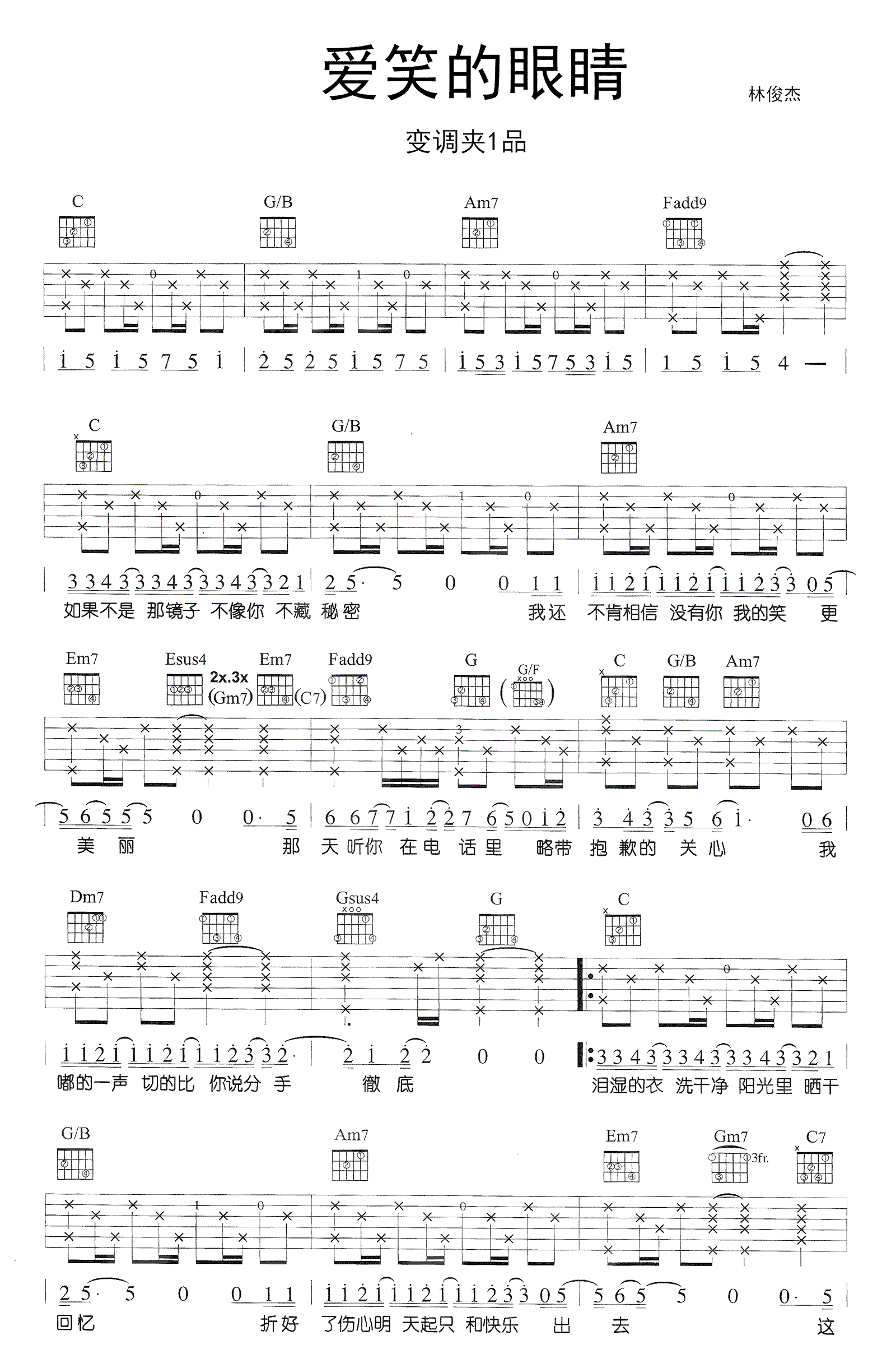 吉他林俊杰《爱笑的眼睛》吉他谱 - 推荐版本