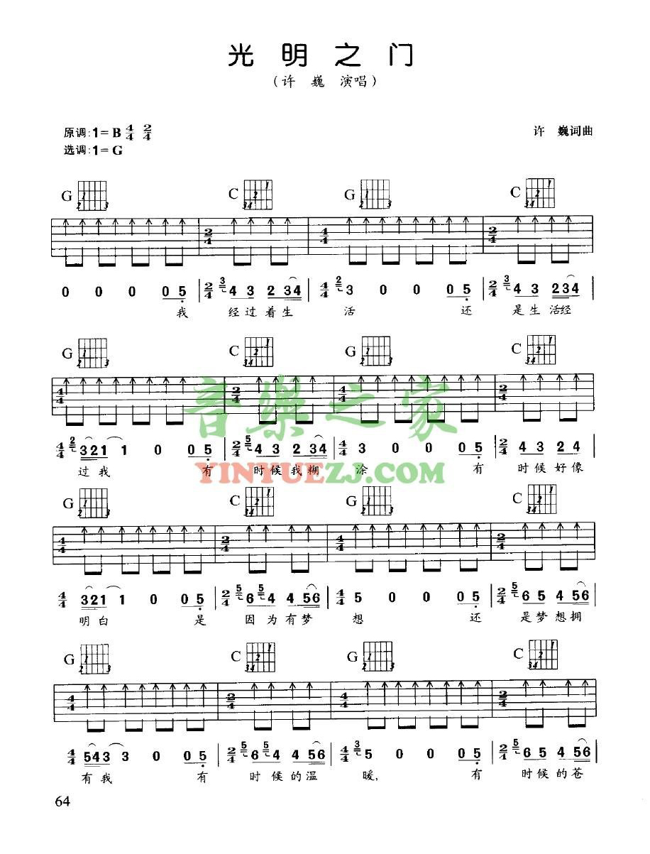 吉他许巍《光明之门》吉他谱 - 非常多人都在弹的版本