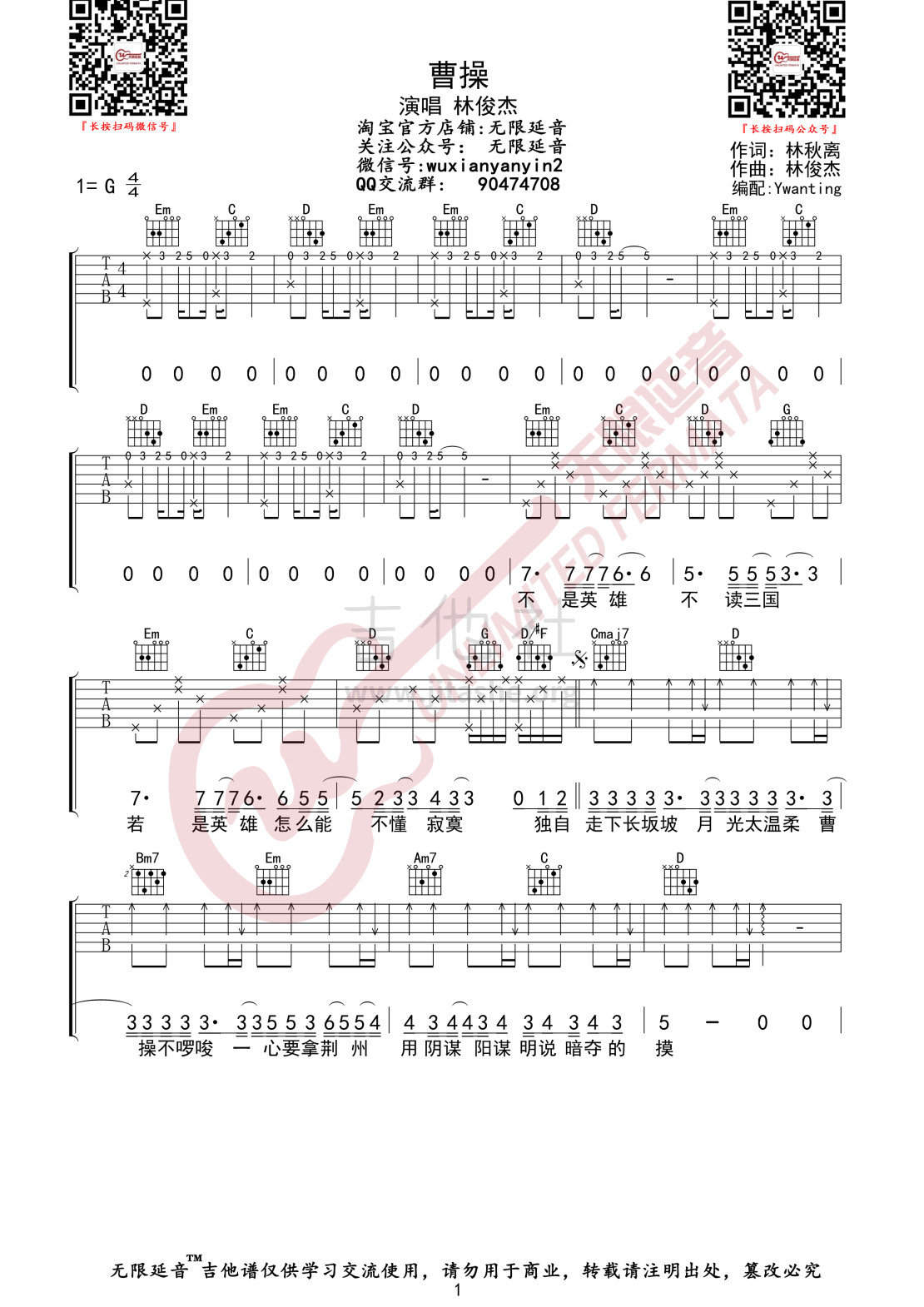 吉他林俊杰《曹操》吉他谱
