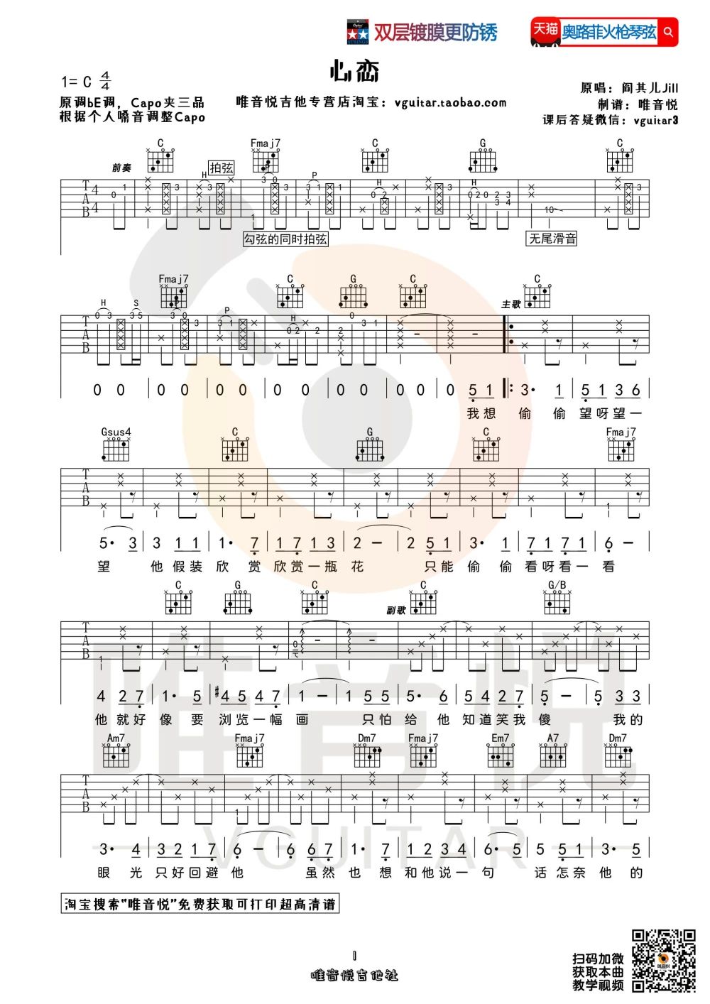 吉他阎其儿jill《心恋》吉他谱
