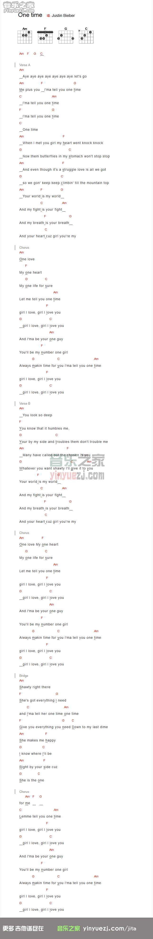 韩国乐队C.N.Blue《onetime》吉他谱,YYZJ编配出品,共有1张高清图谱,免翻页排版设计。...
