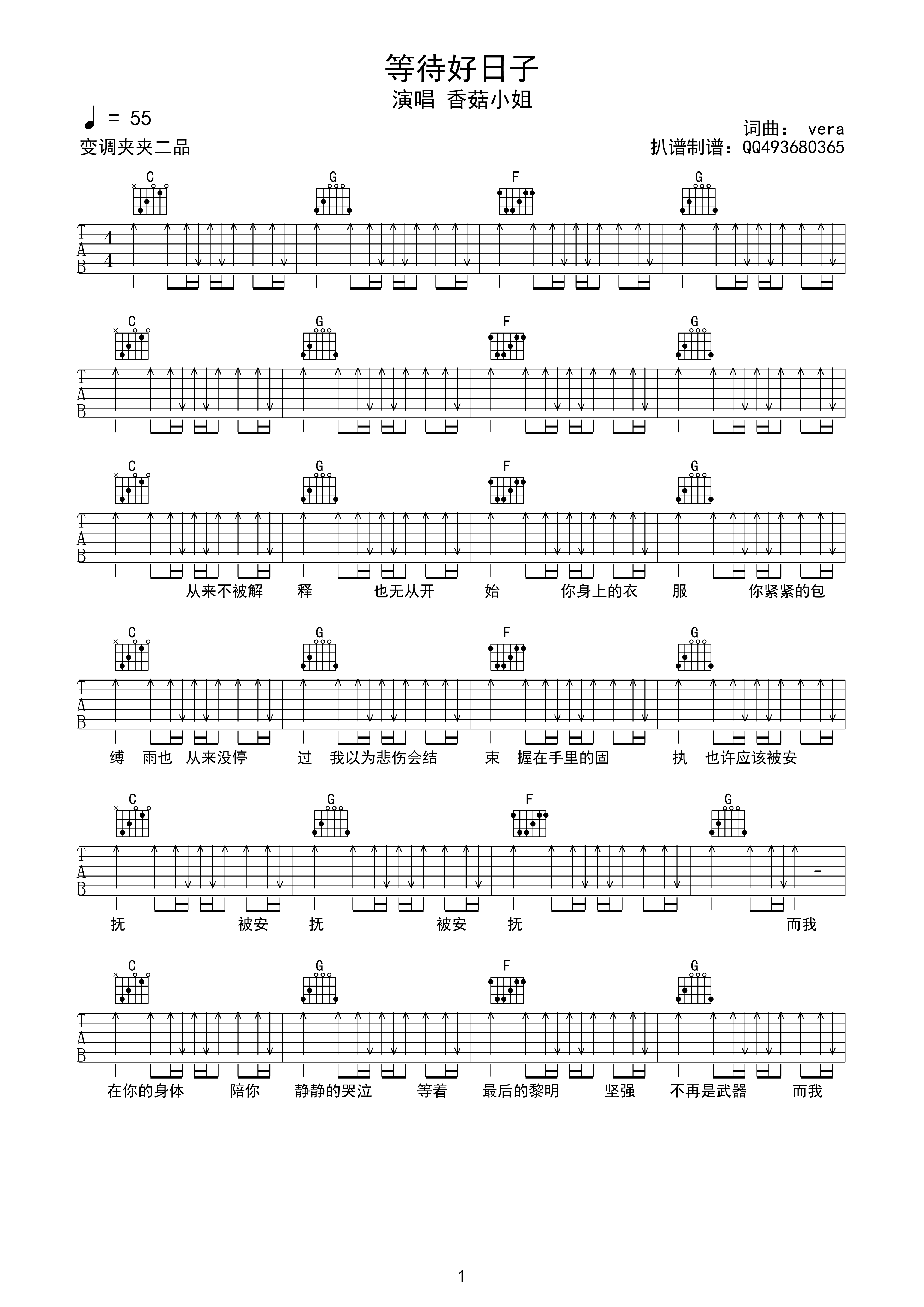 吉他香菇小姐《等待好日子》吉他谱 - 完整版