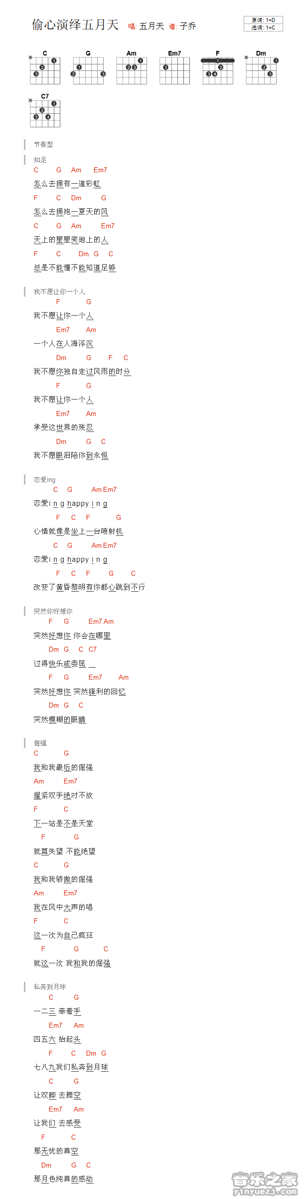 吉他五月天《偷心演绎五月天》吉他谱 - 很多人都在弹的版本
