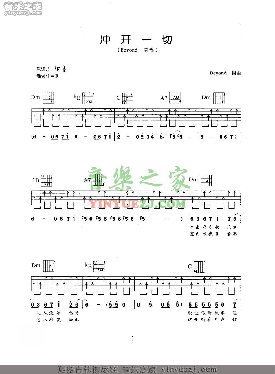 Beyond《冲开一切》吉他谱,YYZJ编配出品,共有5张高清图谱。...