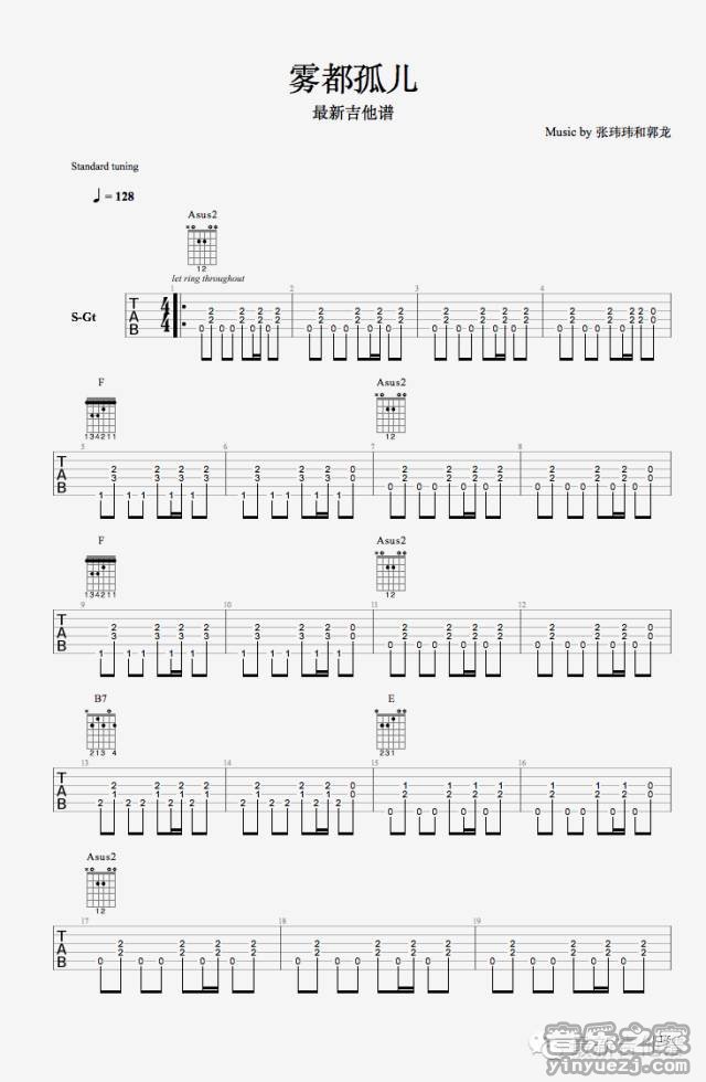 吉他张玮玮/郭龙《雾都孤儿》吉他谱 - 小编推荐练习