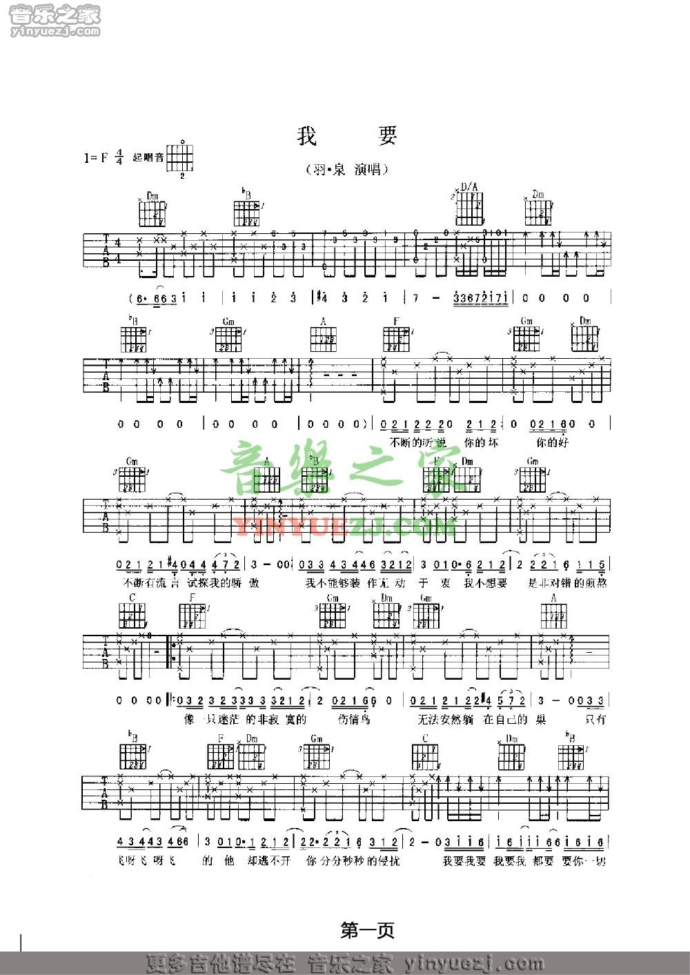 吉他羽泉《我要》吉他谱 - 非常多人都在弹的版本