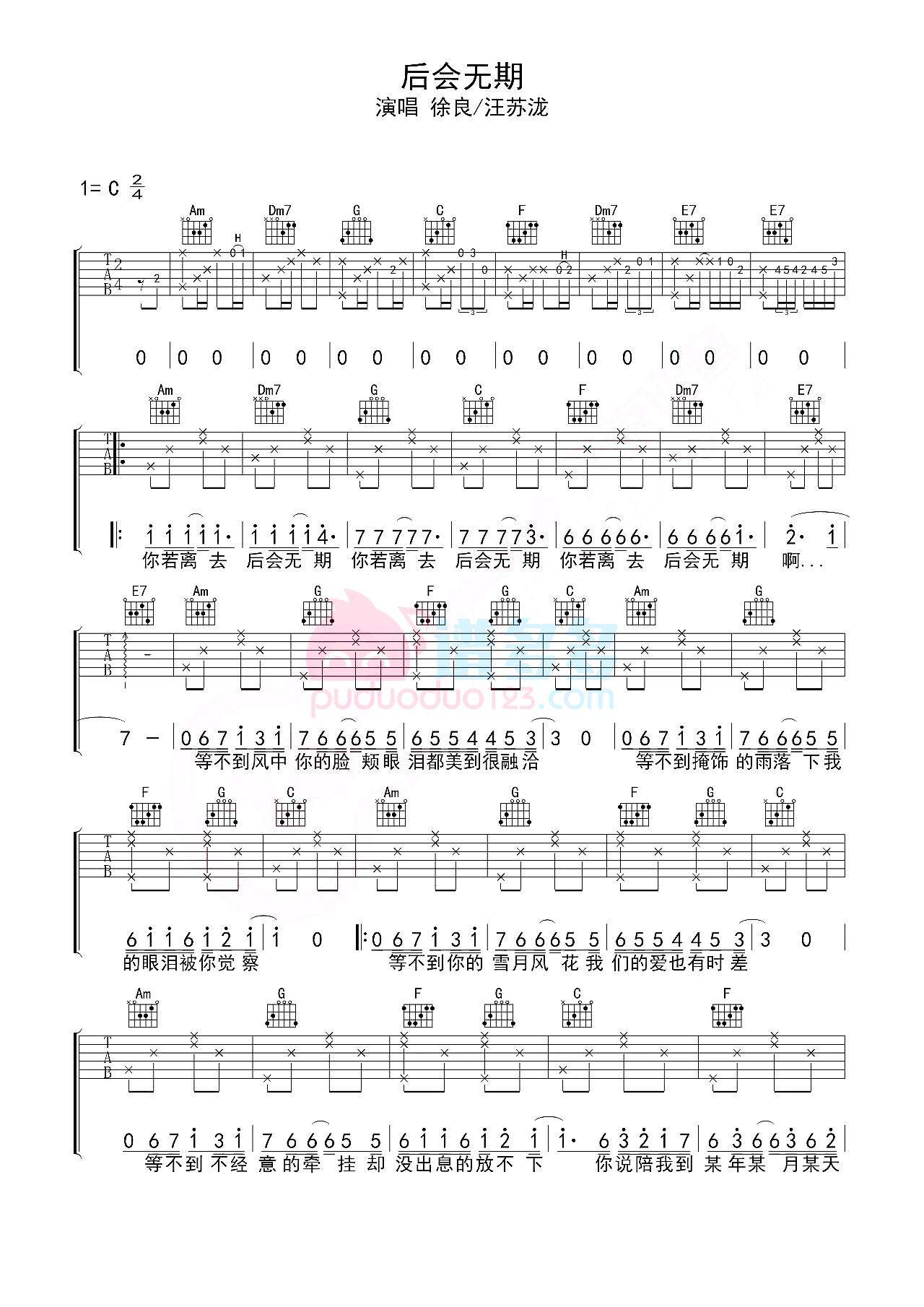 吉他汪苏泷/徐良《后会无期》吉他谱