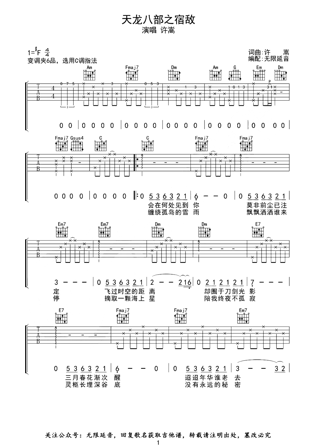 吉他许嵩《宿敌》吉他谱 - 完整版