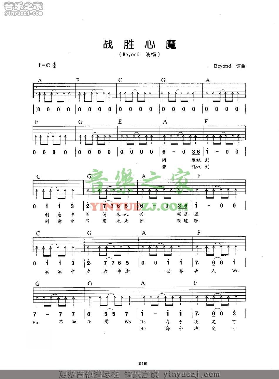 Beyond《战胜心魔》吉他谱,YYZJ编配出品,共有2张高清图谱,免翻页排版设计。...