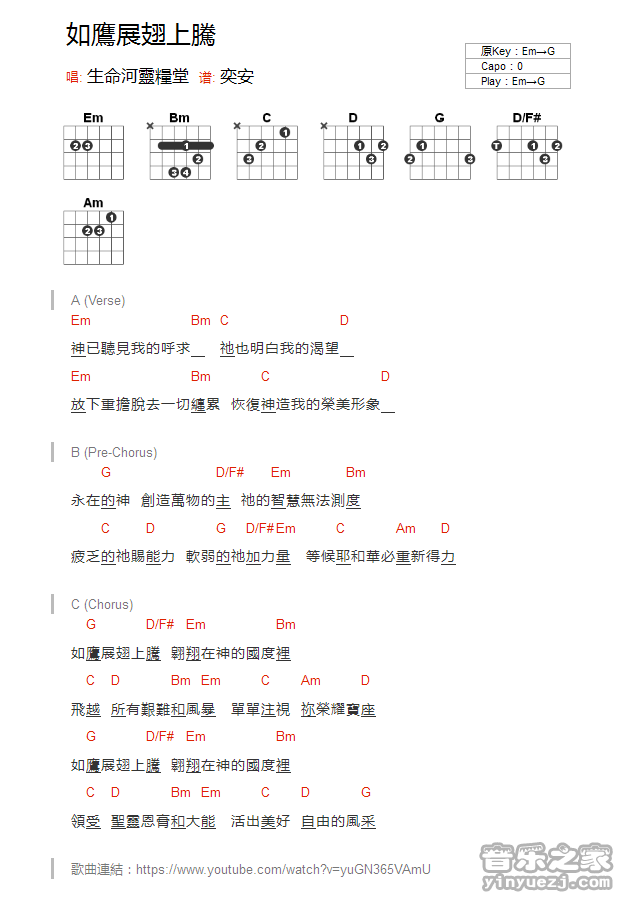 生命河灵粮堂《如鹰展翅上腾》吉他谱,YYZJ编配出品,共有1张高清图谱,免翻页排版设计。...