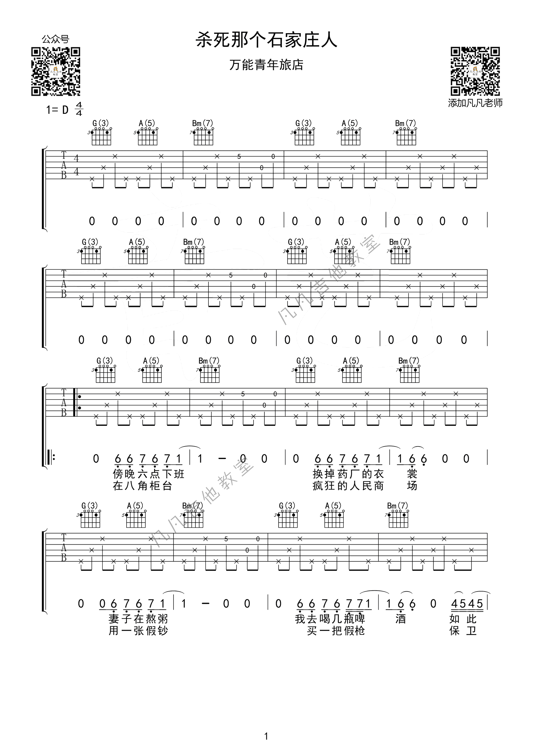 万能青年旅店《杀死那个石家庄人》吉他谱,共有3张高清图谱。...