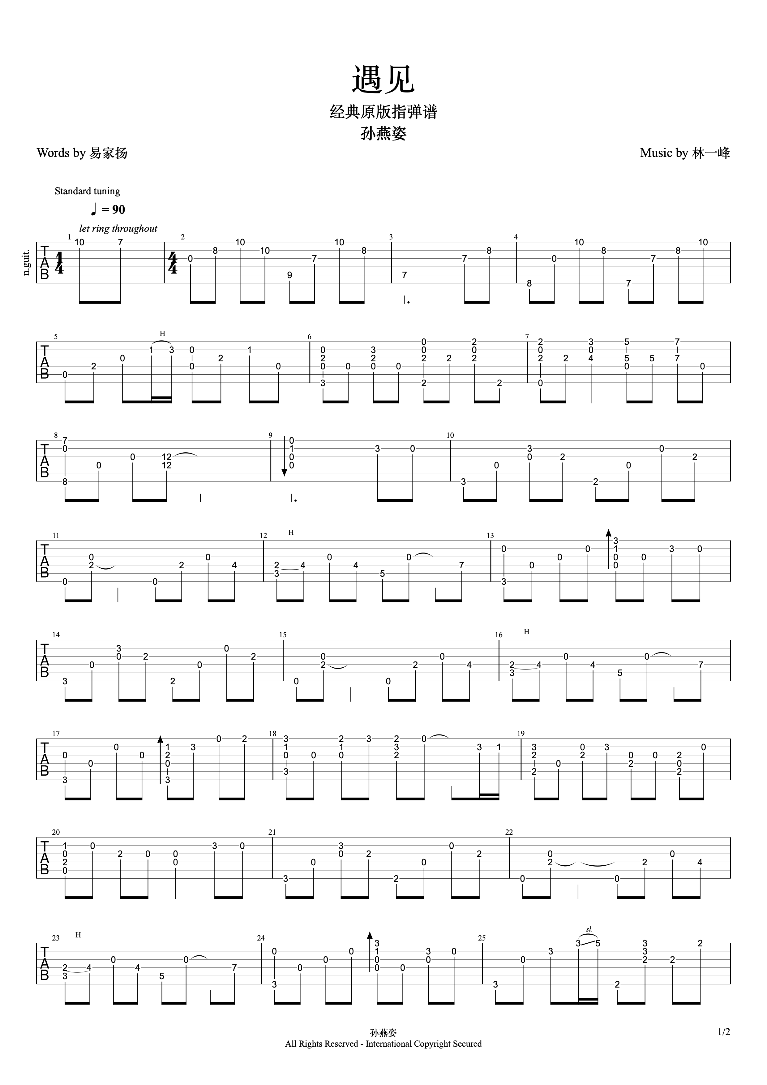 孙燕姿《遇见》吉他谱,共有2张高清图谱,免翻页排版设计。...