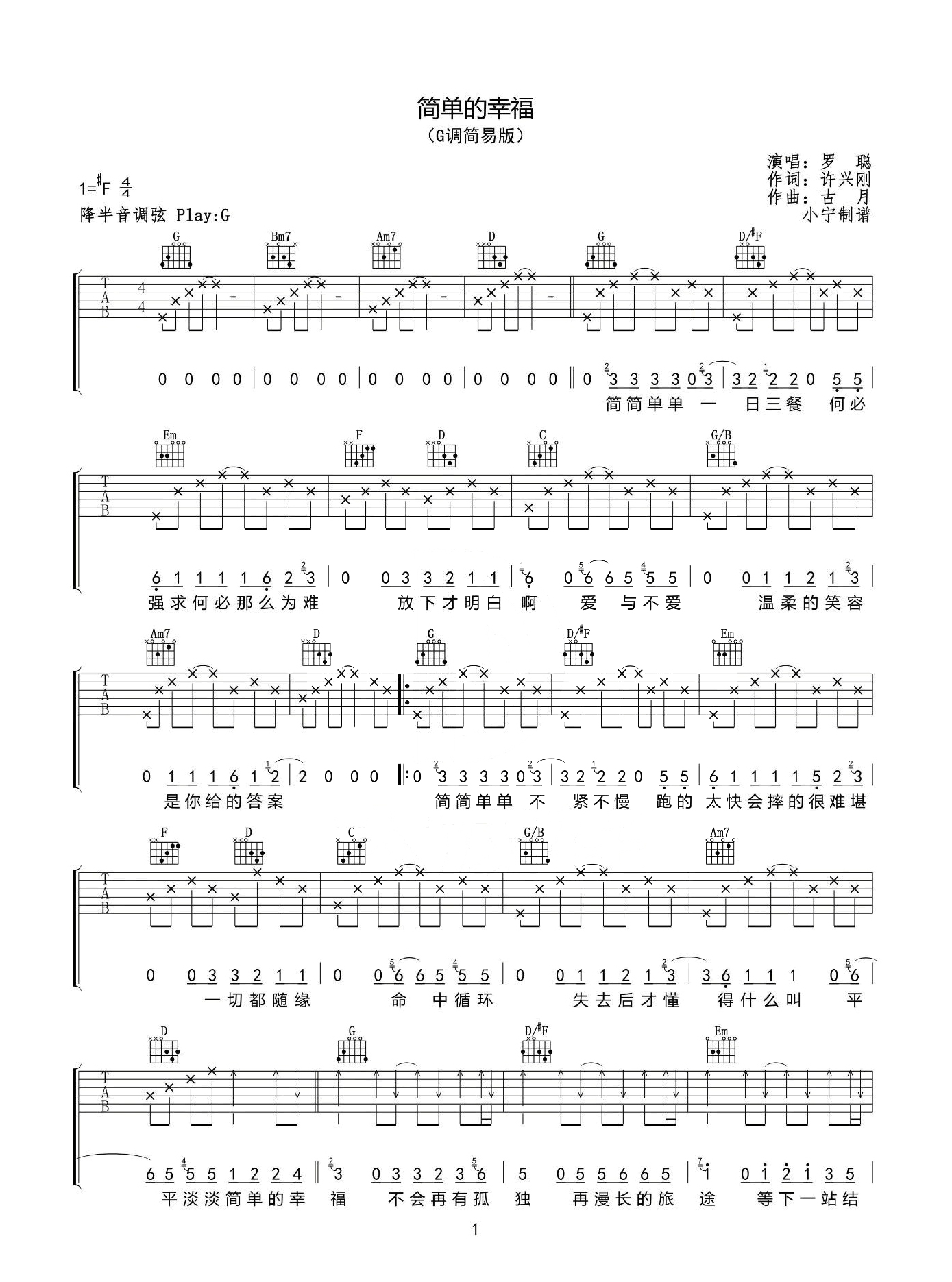 吉他罗聪《简单的幸福》吉他谱 - 完整版