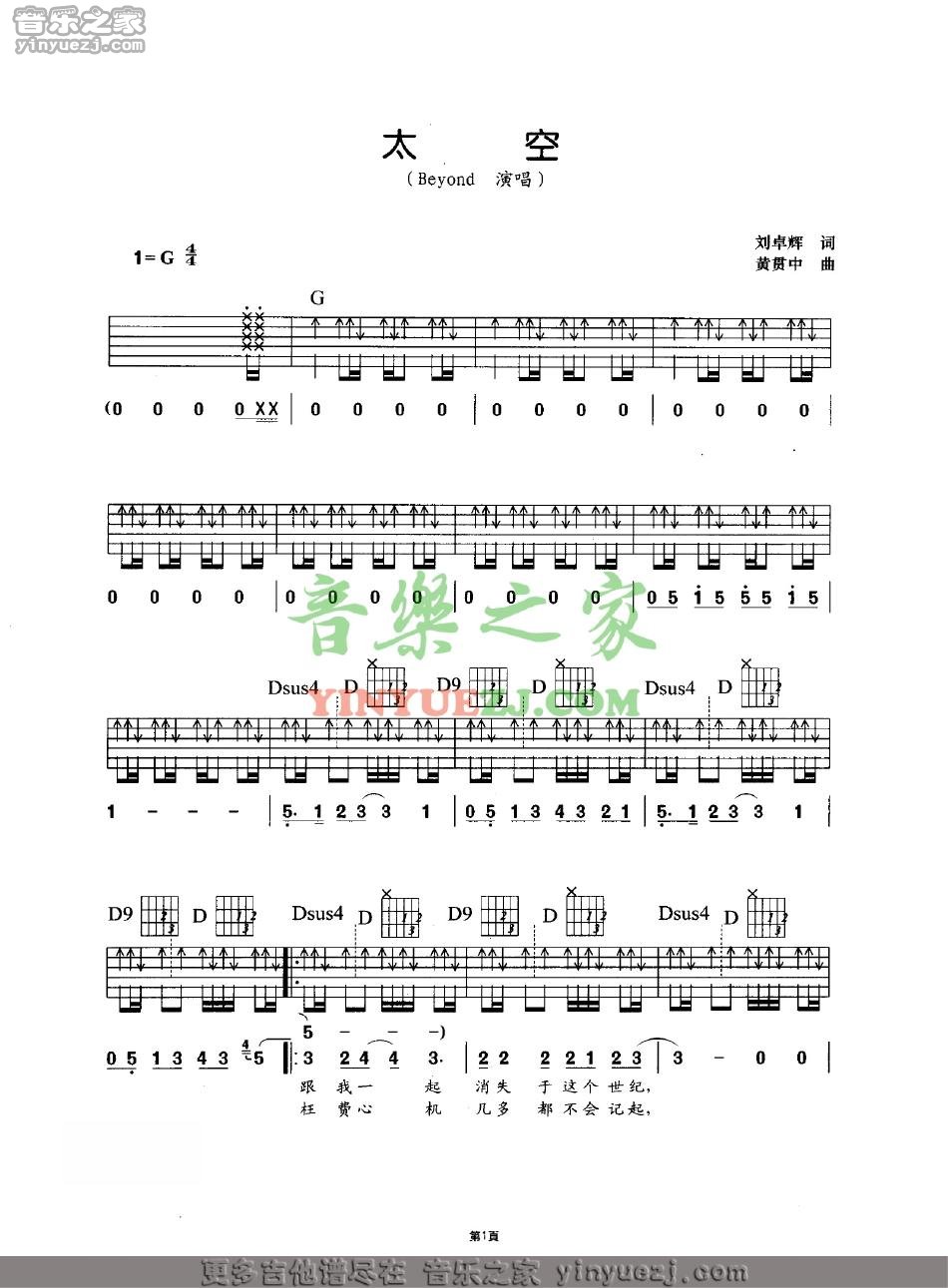 Beyond《太空》吉他谱,YYZJ编配出品,共有4张高清图谱。...