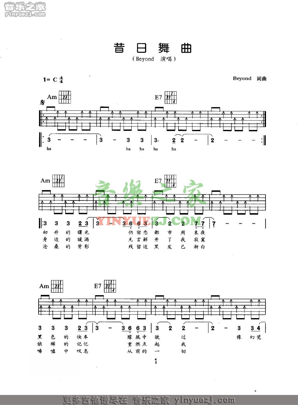 Beyond《昔日舞曲》吉他谱,YYZJ编配出品,共有5张高清图谱。...