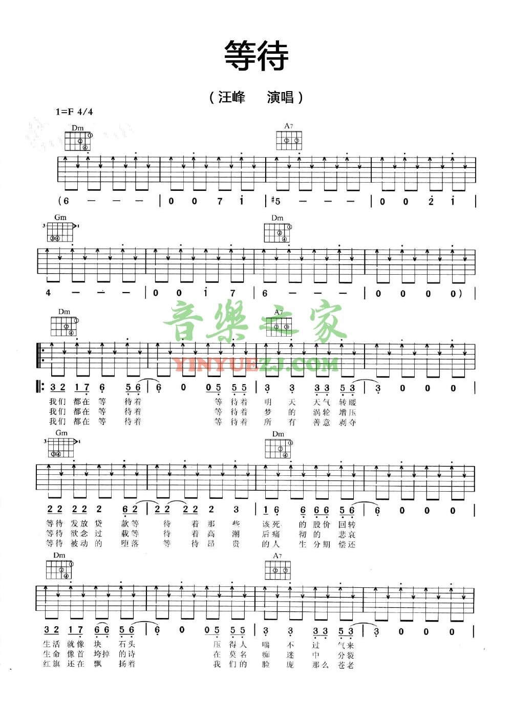 吉他汪峰《等待》吉他谱