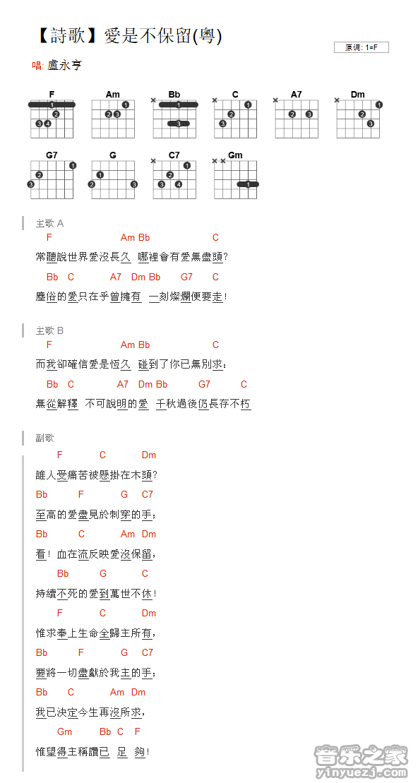 卢永亨《爱是不保留》吉他谱,共有1张高清图谱,免翻页排版设计。...